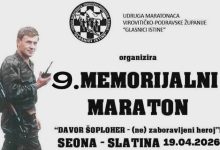 Udruga maratonaca Virovitičko-podravske županije „Glasnici istine“ u nedjelju, 19. travnja 2026. godine, organizira 9. memorijalni maraton u čast Davora Šoplohera,…