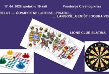 Lions club Slatina organizira u petak, 17. travnja 2026. godine, s početkom u 19 sati, večer društvenih igara i druženja…