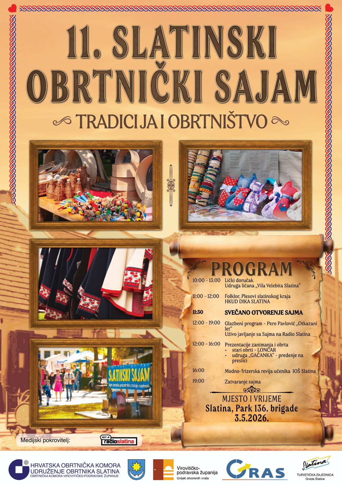U Slatini će se u nedjelju, 3. svibnja 2026. godine, održati 11. Slatinski obrtnički sajam pod krilaticom „Tradicija i obrtništvo“.