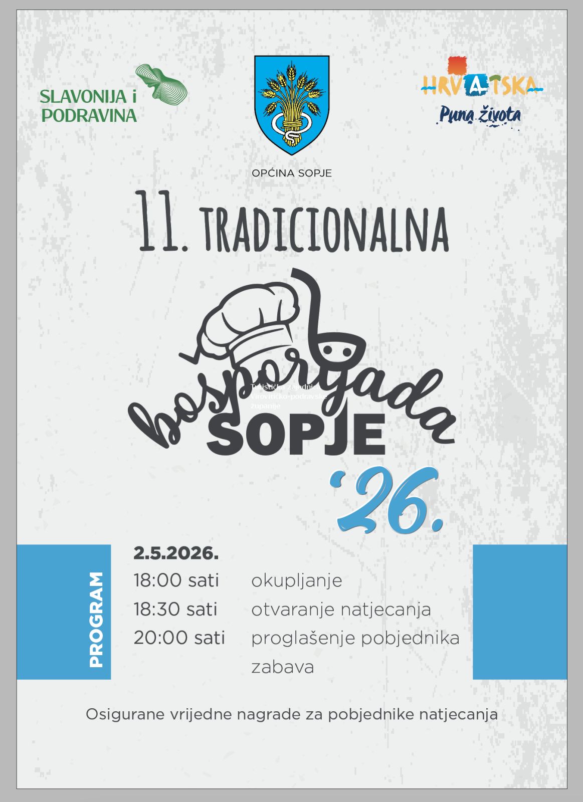 11. tradicionalna sopjanska “Bošporijada” u subotu, 2. svibnja 2026.