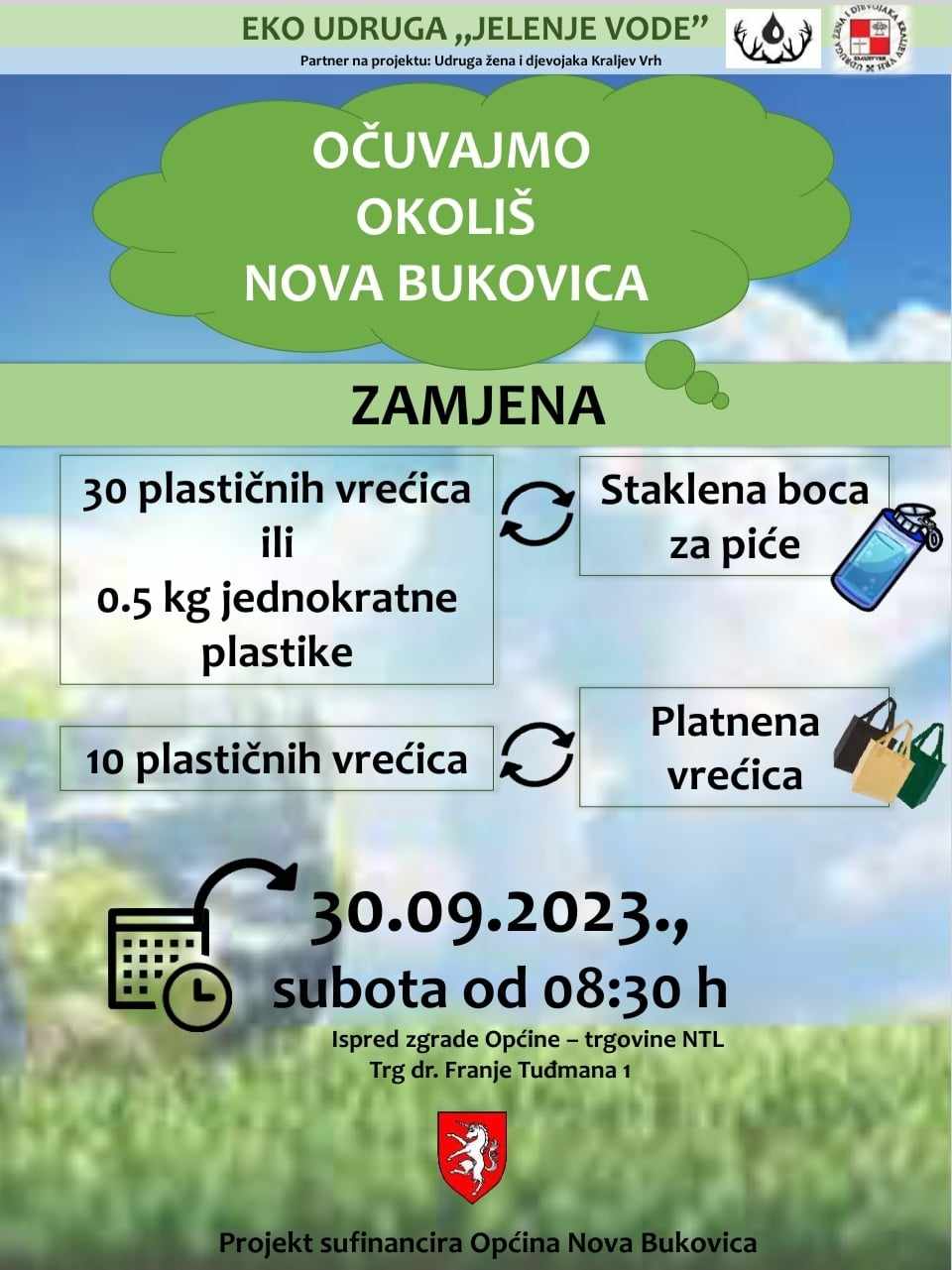 Eko akcija će se održati na Trgu dr. Franje Tuđmana 1, ispred zgrade Općine Nova Bukovica s početkom u 8:30 sati.
