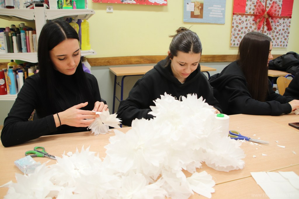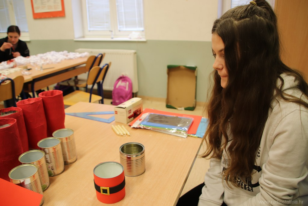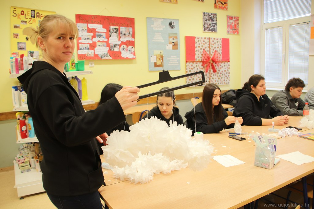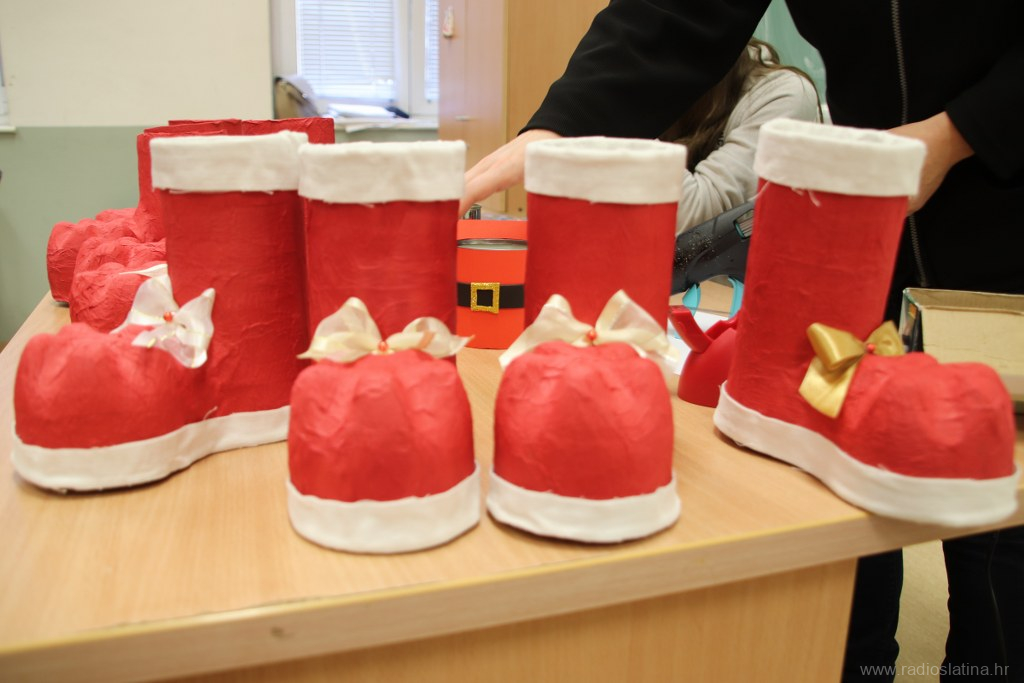 Učenici zanimanja krojač, pod vodstvom nastavnica Paule Kukuljević Idek, Danice Tot i Klaudije Rončević, izrađivali su božićne čizmice, papirnate pahuljice, ukrasne posude za olovke, pregače s blagdanskim motivima, vunene kapice te zvjezdice od papirnatih slamčica.