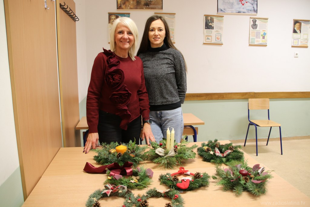 Učenici prvih razreda kuhara, konobara i prodavača, uz stručnu podršku nastavnica Tanje Nikšić i Ružice Milaščević, izrađivali su adventske vijence i vjenčiće za vrata.