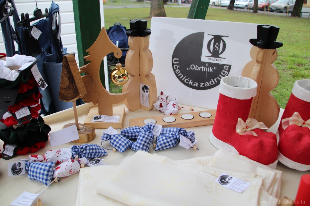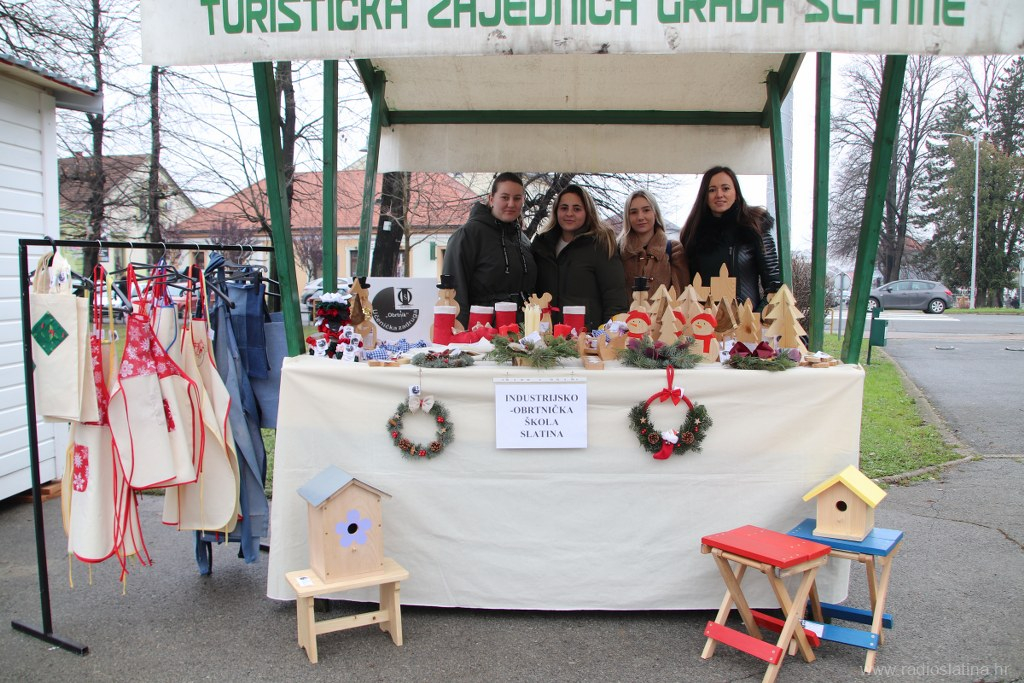 U sklopu manifestacije Advent u Slatini, danas (petak) su učenici i profesori Industrijsko-obrtničke škole Slatina priredili prodajnu izložbu božićnih ukrasa u blagdanskom parku ispred zgrade Gradske uprave.