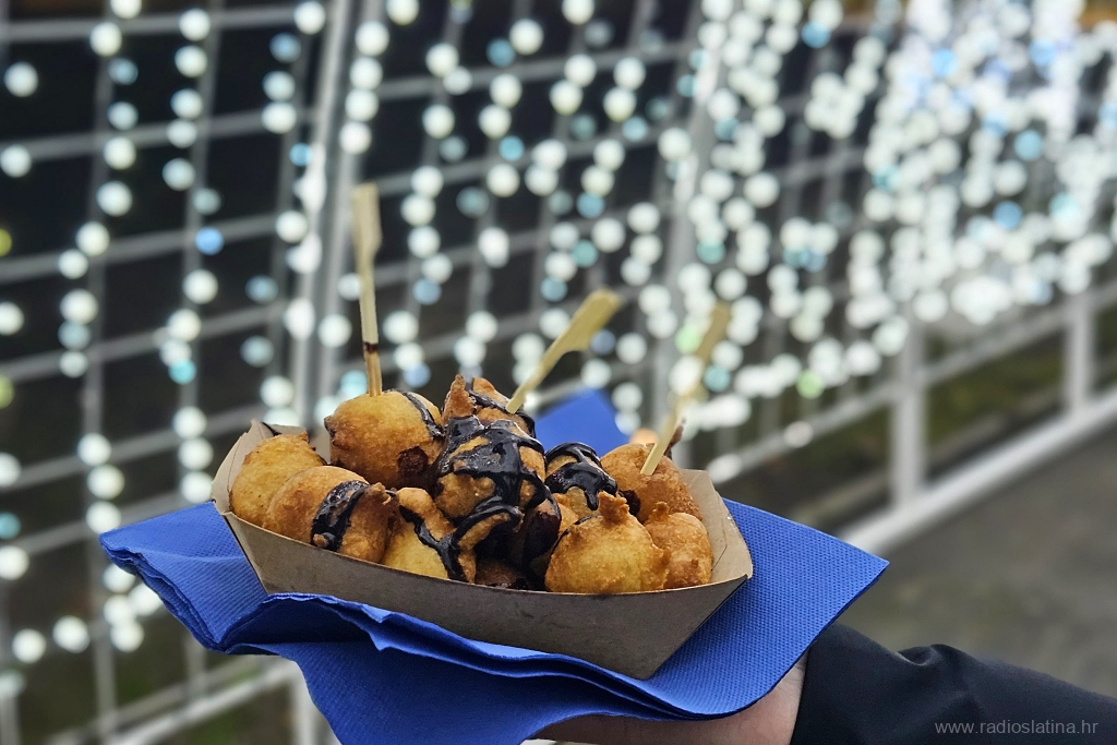 Adventski park i ovoga je vikenda odisao mirisima raznih delicija. Fritule, kobasice, lepinje i kuhano vino grijali su okupljene, a mnogobrojne lampice dodatno su učinile da se božićni duh osjeti na svakom koraku.
