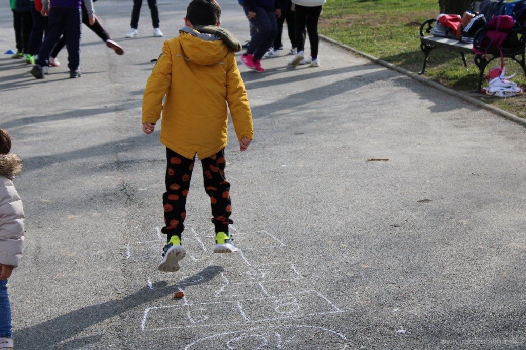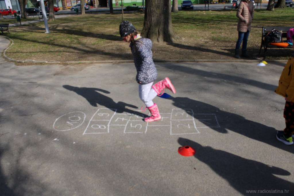 U skladu s epidemiološkom situacijom danas su se prakticirale štafetne i elementarne igre, odnosno igre u kojima nema izravnog kontakta sudionika a djeca ipak borave na zraku i kreću se.