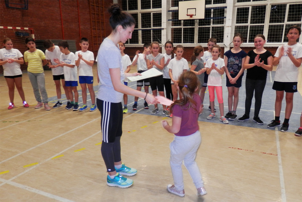 U provedbi treninga zimske atletske škole pomagali su im sada već poznati slatinski atletičari Doroteja Santi, Sebastijan Herceg i Marina Novoselec. Oni se natječu u srednjim atletskim disciplinama na 600, 800 i 1500 metara te malo dulje dionice na 3000 i 5000 metara. – S mlađim uzrastima radimo sve atletske discipline, hodanje, trčanje, skokove i bacanja, a kasnije ide specijalizacija. Sudjelovanjem Doroteje, Sebastijana i Marine na ovim treninzima htjeli smo djeci približiti starije, poznate atletičare i ukazati na uspjehe koji se mogu postići upornošću i redovitim vježbanjem, kaže Tomislava Medvedović.