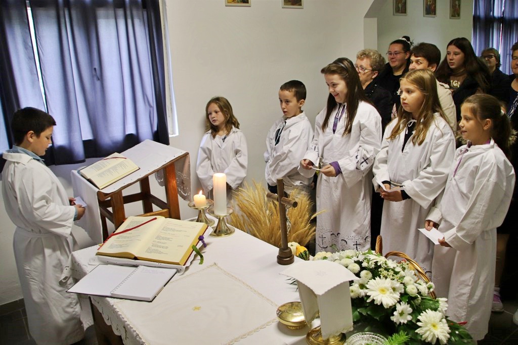 – Danas želimo zahvaliti na svim dobročinstvima primljenima od Boga, želimo zahvaliti za vrijedne ruke, za plodove koje smo od Boga dobili, za lijepo vrijeme, za kišu, za sve ono što dobivamo u pravo vrijeme. Sigurno danas na poseban način su radosni naši školarci, jer u školi slavimo i Dane kruha, a onda i učiteljice i svi mi ostali, jer bez kruha svagdašnjeg teško je živjeti. Gledamo na naš materijalni život, odnosno na naše tijelo, ali bez kruha života vječnoga, bez Isusa Krista teško je živjeti i našoj duši. Njoj je isto potreban kruh koji je sam Isus koji nam se daje u svakoj svetoj misi, gdje ga primamo, gdje ga živimo, gdje ga svjedočimo i nakon misnog slavlja zapravo budemo ono što ovdje jesmo – vjernici, kršćani i na taj način svjedočimo u ovom prolaznom životu svoju vjeru dok nas Gospodin ne pozove.