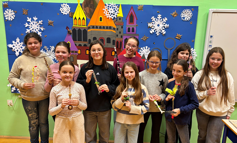 Nakon što su se okrijepili od hladnoće toplim čajem, uz zvukove božićne glazbe, učenici su prionuli na posao. Učenici petog razreda iskoristili su razne materijale, od drveta, sušenog cvijeća, žice, perlica, konopa pa sve do glinamola kako bi dizajnirali i izradili svoje čarobne štapiće po uzoru na svijet malog čarobnjaka Harryja Pottera. Učenici osmog razreda izrađivali su ukrase za bor od papira i hamera u obliku prozorčića dvorca Hogwarts.