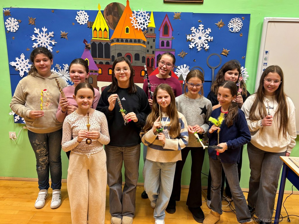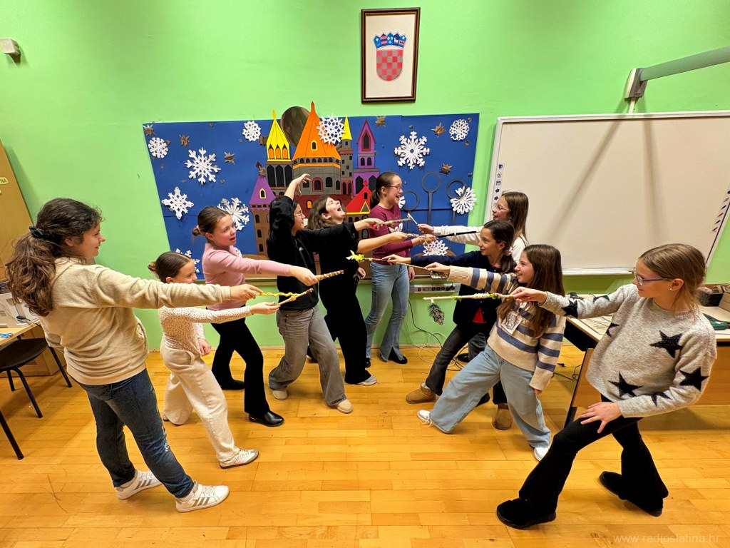 Nakon što su se okrijepili od hladnoće toplim čajem, uz zvukove božićne glazbe, učenici su prionuli na posao. Učenici petog razreda iskoristili su razne materijale, od drveta, sušenog cvijeća, žice, perlica, konopa pa sve do glinamola kako bi dizajnirali i izradili svoje čarobne štapiće po uzoru na svijet malog čarobnjaka Harryja Pottera. Učenici osmog razreda izrađivali su ukrase za bor od papira i hamera u obliku prozorčića dvorca Hogwarts.