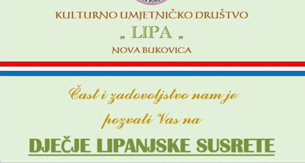 KUD „Lipa“ Nova Bukovica za sutra, 9.lipnja, organizira „Dječje lipanjske susrete“ koji će održati u Domu kulture u Novoj Bukovici.…