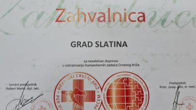 Zahvalnica Hrvatskog Crvenog križa Gradu Slatini za nesebičan doprinos u ostvarivanju humanitarnih zadaća Crvenog križa