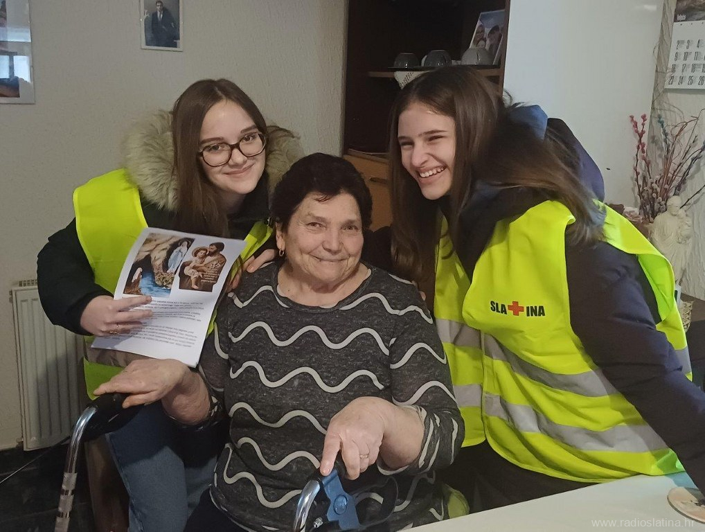 Mlade volonterke Gradskog društva Crvenog križa Slatina Lucija i Tena zajedno s ravnateljem Crvenog križa Vladimirom Jelenčićem, jučer (srijeda) su obišle šest domova starijih i bolesnih osoba sa željom da im pruže svoju podršku povodom dana bolesnika.