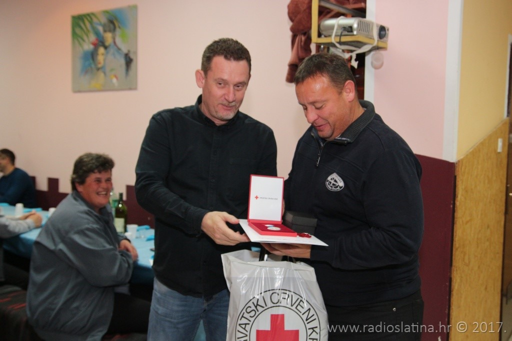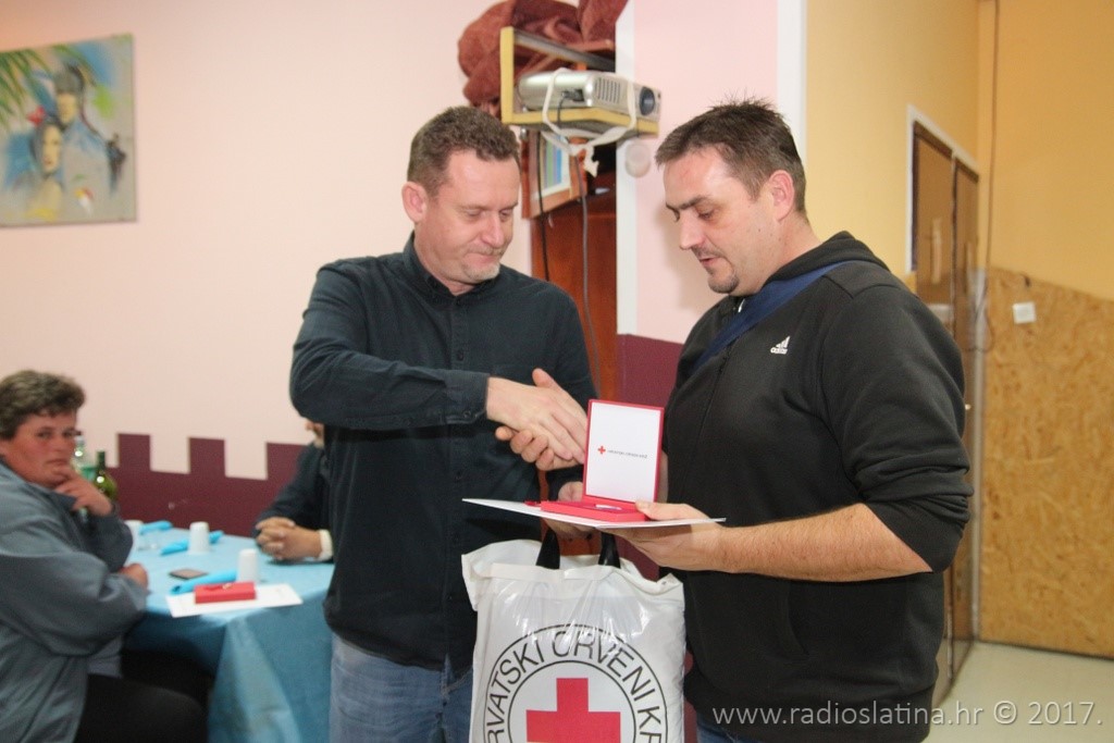 Jučer je u prostorima Gradskog društva Crvenog križa Slatina održana svečana dodjela jubilarnih priznanja višestrukim darivateljima krvi. Na ovoj maloj svečanosti, osim ravnatelja slatinskog Crvenog križa Vlatka Jelenčića kao domaćina, priznanje i čestitke višestrukim darivateljima krvi uputili su i gradonačelnik Denis Ostrošić, zatim dr.Miroslav Venus ispred Hrvatskog Crvenog križa, te načelnik Policijske postaje Slatina Kruno Sertić kao predstavnik, kako je rekao ravnatelj Jelenčić, slatinske ”firme” sa najvećim brojem dobrovoljnih darivatelja krvi.