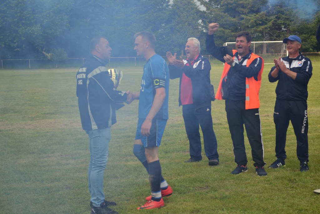 ”Dinamo, Dinamo, Dinamo, …!!!” – orilo se po posljednjem zvižduku suca Lončara danas u kasnim popodnevnim satima u Gornjem Miholjcu. Naime, danas je u Gornjem Miholjcu odigrana utakmica posljednjeg kola 3.županijske nogometne lige – istok u kojoj su se sastali nominalni domaćini članovi Dinama iz Josipova i Krčevine iz Čađavačkog Luga. Upravo je tih 90.minuta odgonetnulo novog prvaka lige i novog člana višeg nogometnog ranga 2.županijske lige skupine istok. Bio je to dvoboj prvoplasirane i drugoplasirane momčadi lige, a s obzirom na situaciju prije ogleda i Dinamovih 28 naprama 26 bodova koliko je imala Krčevina, domaćinu je osim pobjede za naslov bio dovoljan i neriješen ishod, dok je gostima igrala samo pobjeda. I derbi je opravdao očekivanja. Očekivano, s obzirom na ulog koji je bio u igri i nije se previše umiralo u ljepoti već se čekala i najmanja protivnička pogreška s kojom bi ekipa koja ju dočeka došla na pobjednički štih. Jednu takvu, u dosta isprekidanoj igri ”obogaćenoj” sa čak 9 žutih kartona dočekali su ”domaćini” u 60.minuti. Gosti su načinili prekršaj u opasnoj zoni, a iz slobodnog udarca gromovito pogađa Željko Lukanić za neopisivo slavlje kako na terenu, a tako i iza uzdužne ograde koju se mahom okupirali žestoki navijači Dinama. Probala je Krčevina na sve načine doći do izjednačenja no danas je to jednostavno bio dan sjajne momčadi iz Josipova. Iako su po završetku sportski čestitali svojim protivnicima na zasluženoj pobjedi, igrači Krčevine izrazili su nezadovoljstvo s nekoliko odluka glavnog suca utakmice. Za to vrijeme krenula je spomenuta pjesma ”plavih” iz Josipova. Slavilo je i staro i mlado, i žene i djeca, a još kad je delegat utakmice Kristijan Strusa uručio pehar novim prvacima lige uslijedio je posvemašnji delirij doslovno obojan ”plavom”, bojom pobjedničke družine iz Josipova.