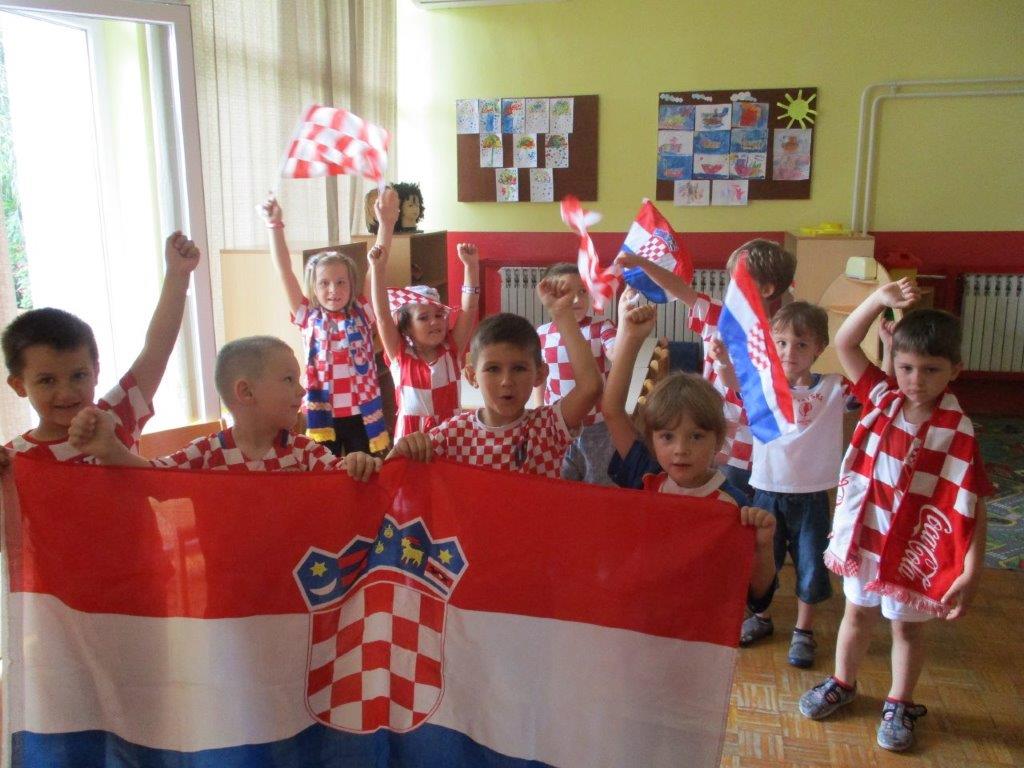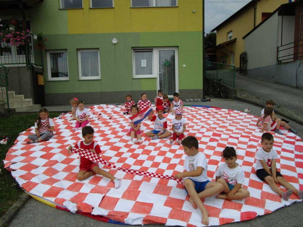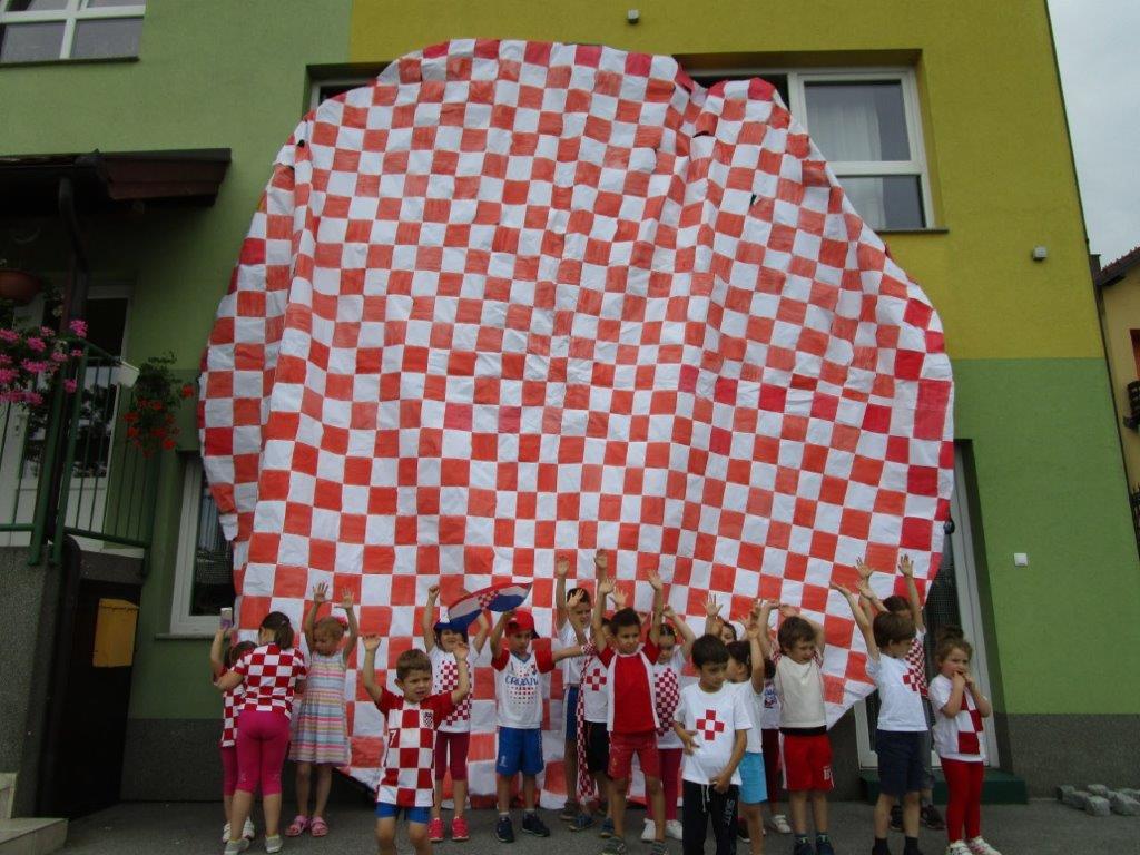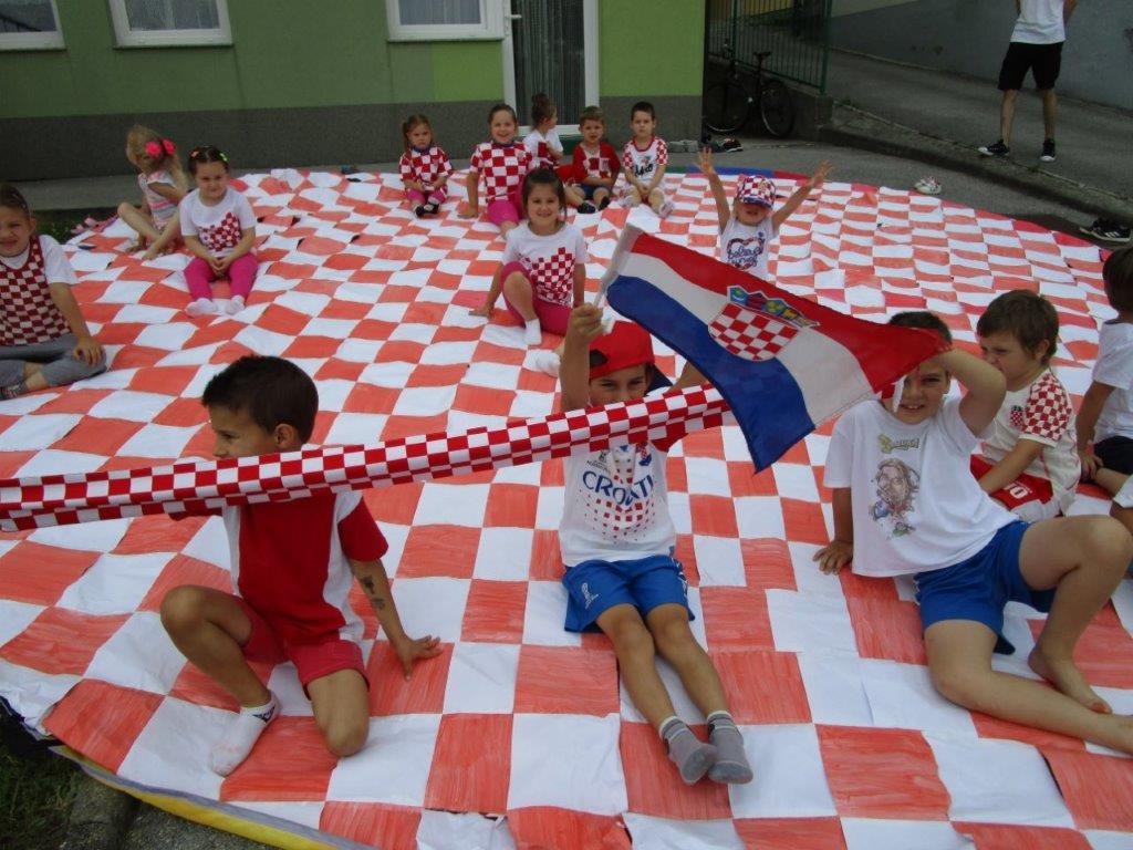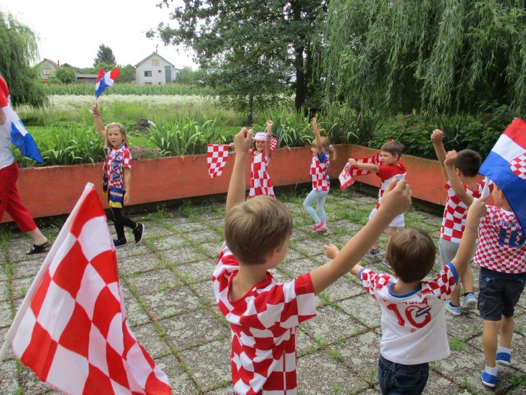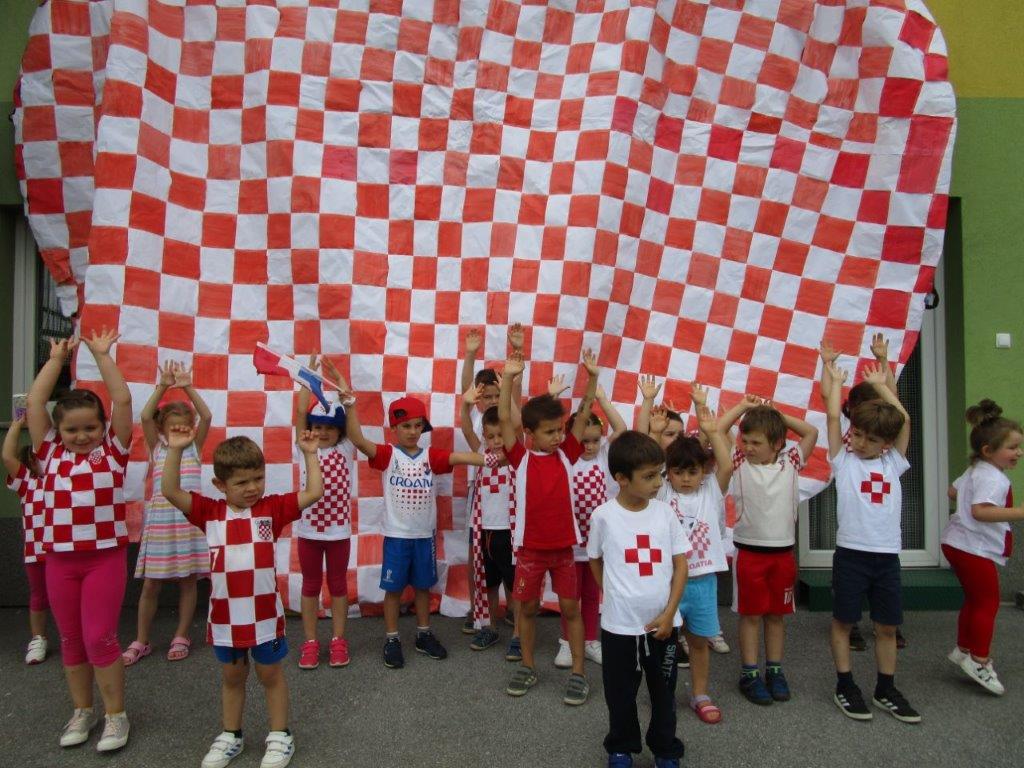 Od ove su zastave veća samo njihova srca puna ponosa koja čekaju pobjedu Hrvatske u finalu Svjetskog nogometnog prvenstva. Uvjereni u uspjeh naših reprezentativaca pobjedu su već proslavili, kako u matičnom vrtiću u Slatini, tako i u Područnom odjelu u Mikleušu. (DV Suncokret)