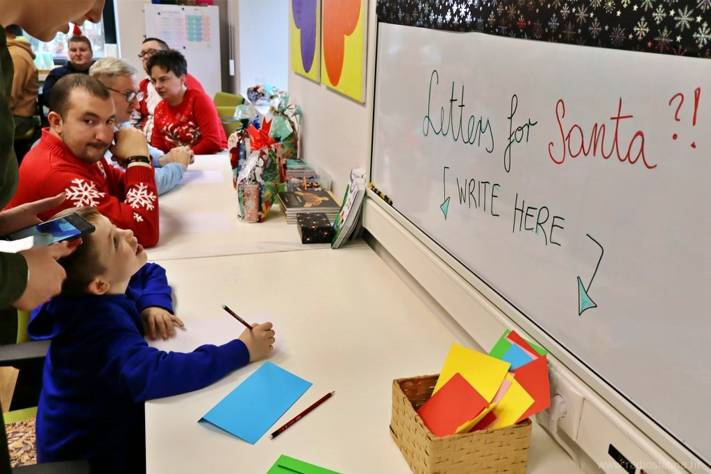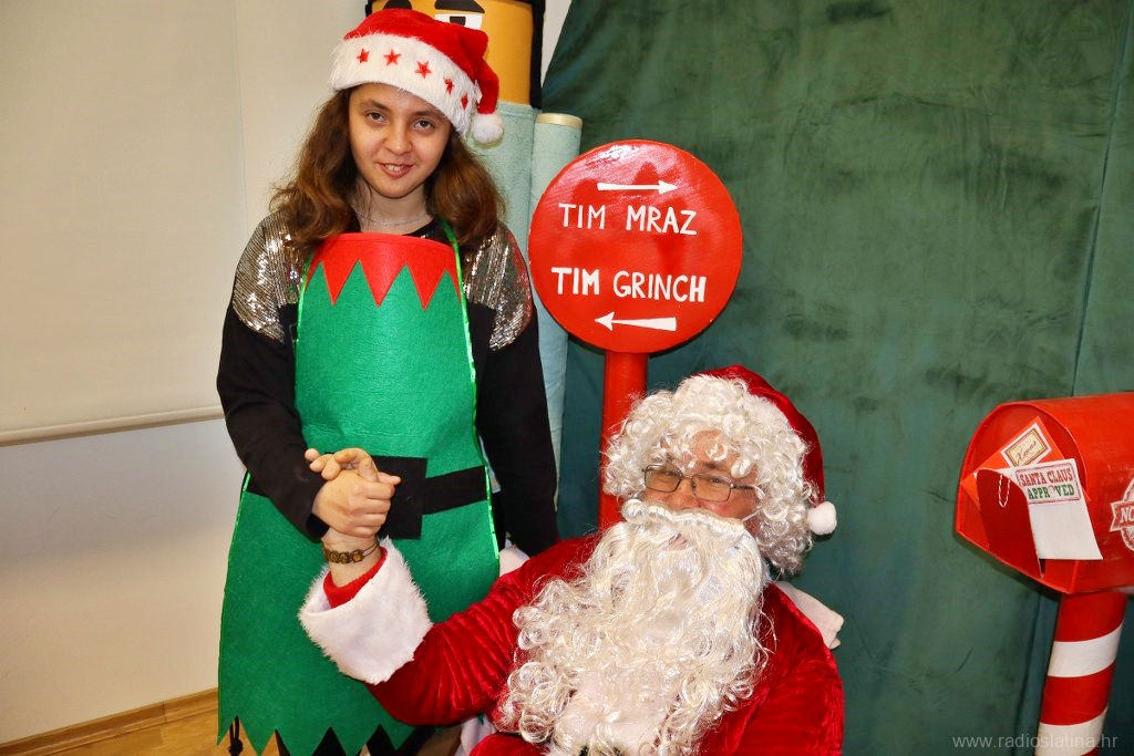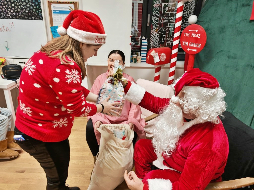 Sljedećeg dana Božićni kutak pretvorio se u pravu malu međunarodnu poštu. Polaznici Helen Doron English Slatina, škole engleskog jezika s voditeljicom i ‘teachericama’ posjetili su Vretence, pisali su svoja pisma Santa Clausu, vježbajući engleski na najljepši mogući način — kroz želje, snove i dječju iskrenost. Pisma su predana Djedici osobno, uz puno smijeha i ponosa. Vretenci su također pokušali sudjelovali u pisanju pisama, dok su neki naučili predstaviti se na engleskom, a na kraju su svima poželjeli “Merry Christmas!”. I Vretenci su bili dobri ove godine stoga ih je voditeljica škole darovala slatkim paketima.
