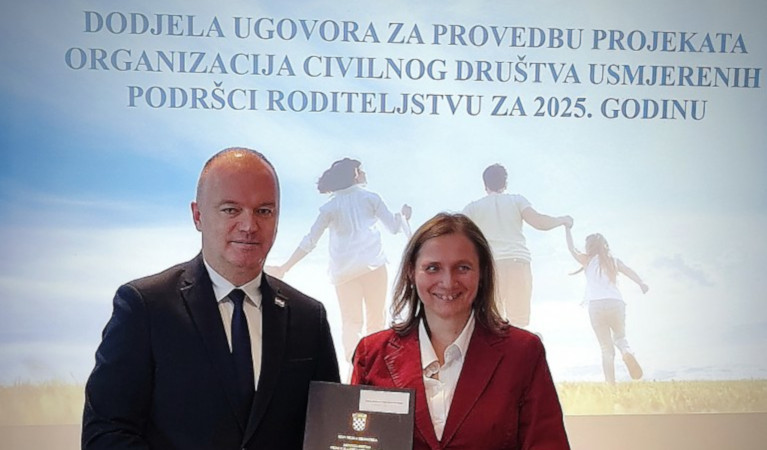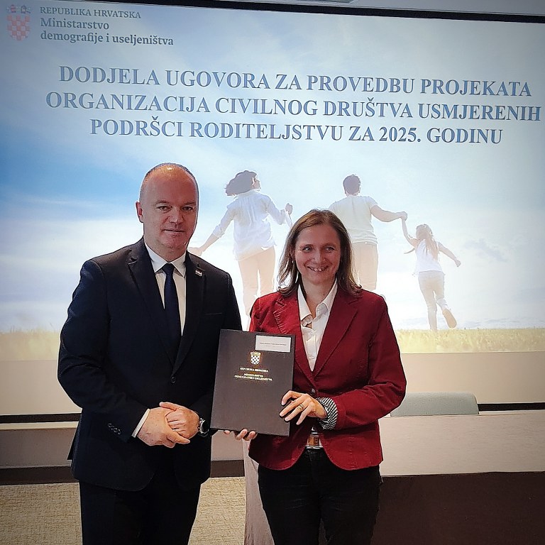 Dana 11.studenog 2025.g. su glavna tajnica Saveza Društava Naša djeca Hrvatske Snježana Krpes i projektna koordinatorica Lana Kassim sudjelovale na svečanoj dodjeli ugovora u okviru poziva “Projekti organizacija civilnog društva usmjerenih podršci roditeljstvu u 2025. godine”, a koje je Ministarstvo demografije i useljeništva dodijelilo 49 udrugama i projektima, izdvojivši ukupno 1.243.429,80 eura za unaprjeđenje sustava podrške roditeljstvu i obiteljima u Hrvatskoj.