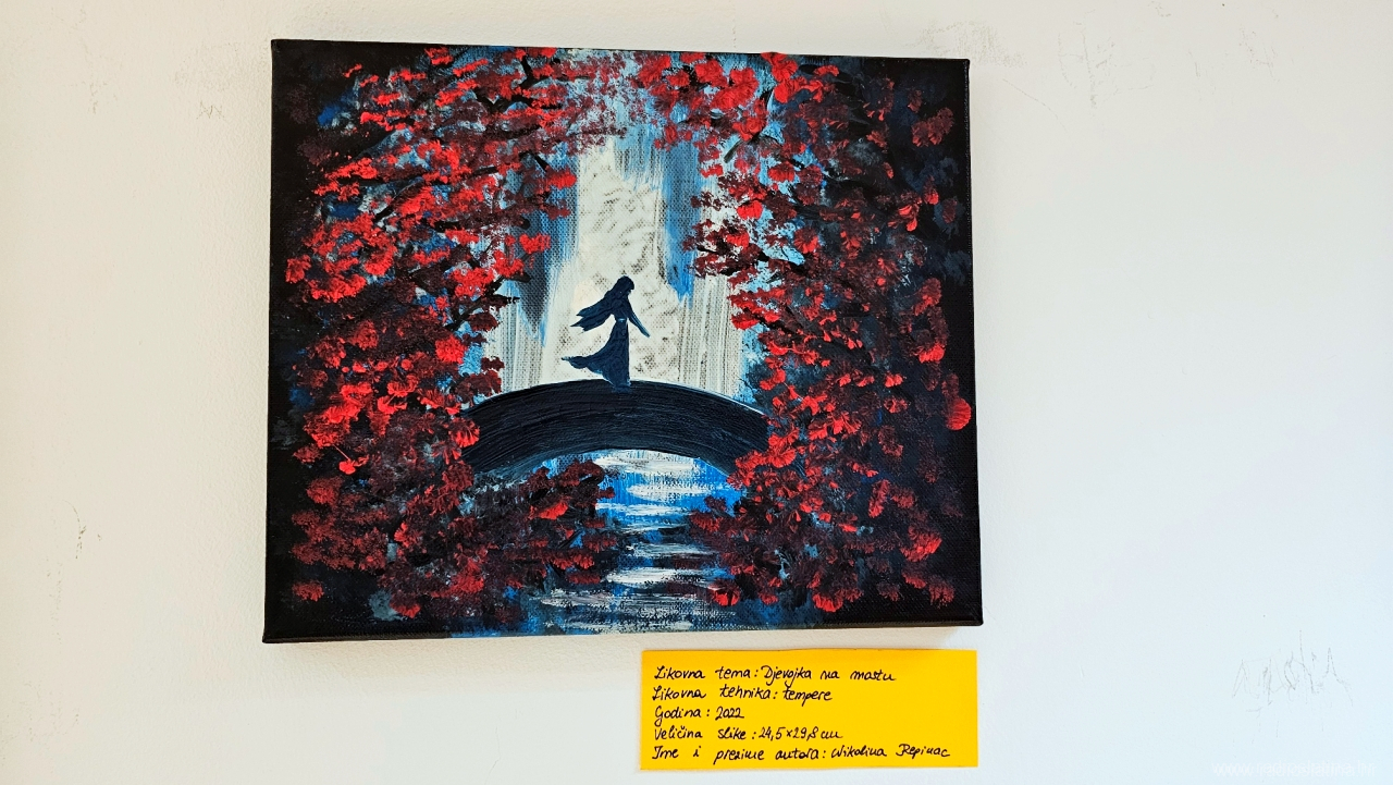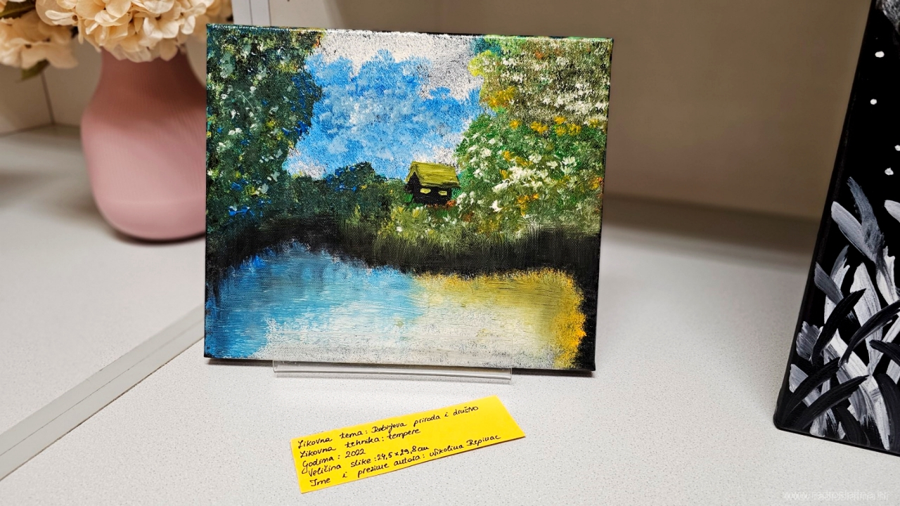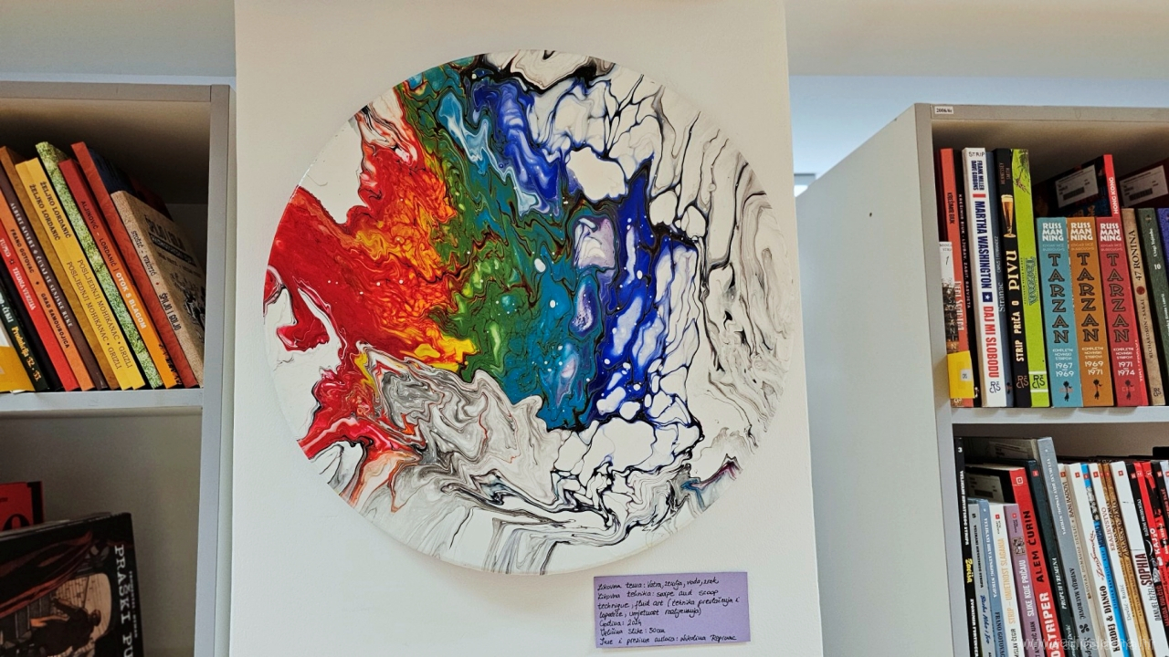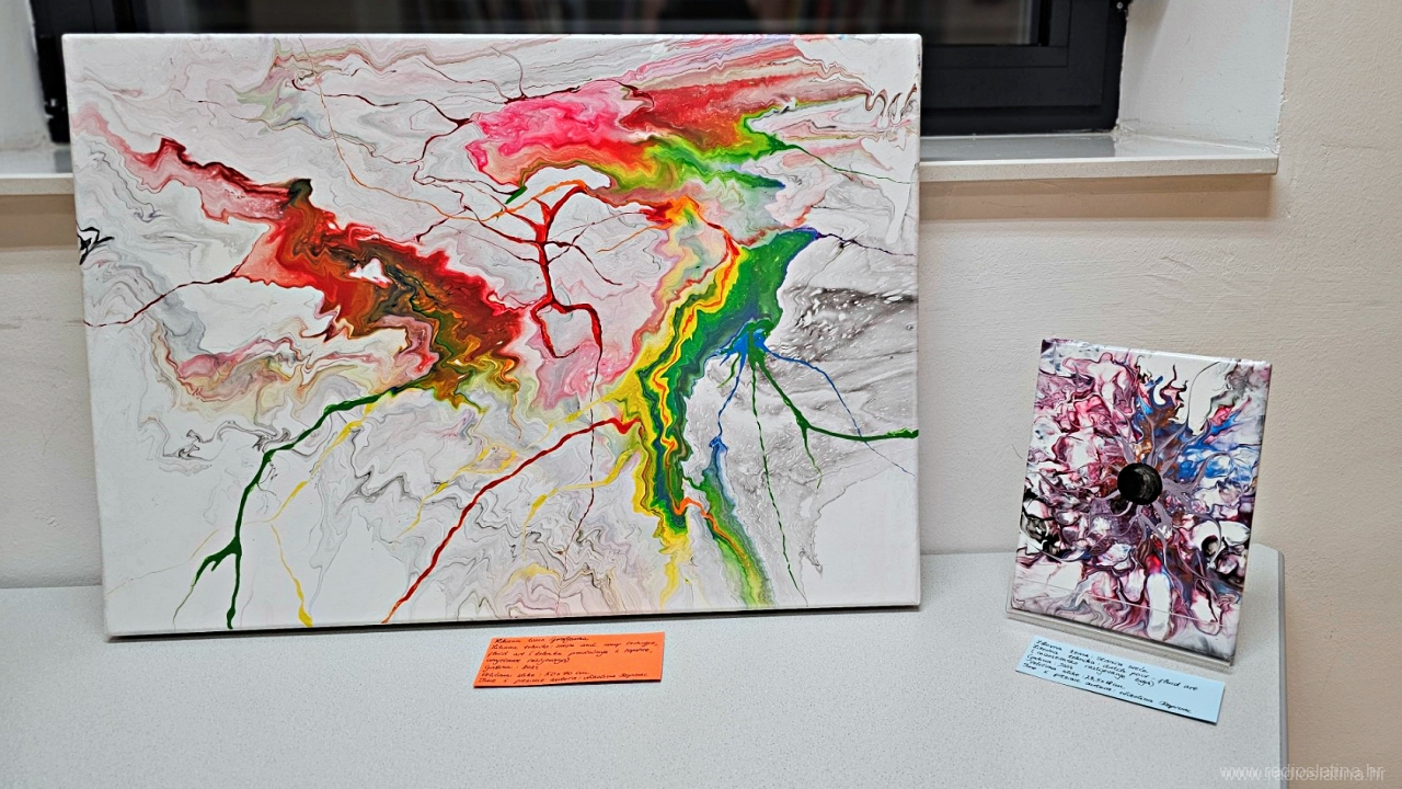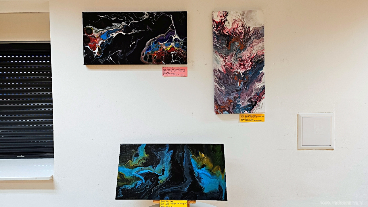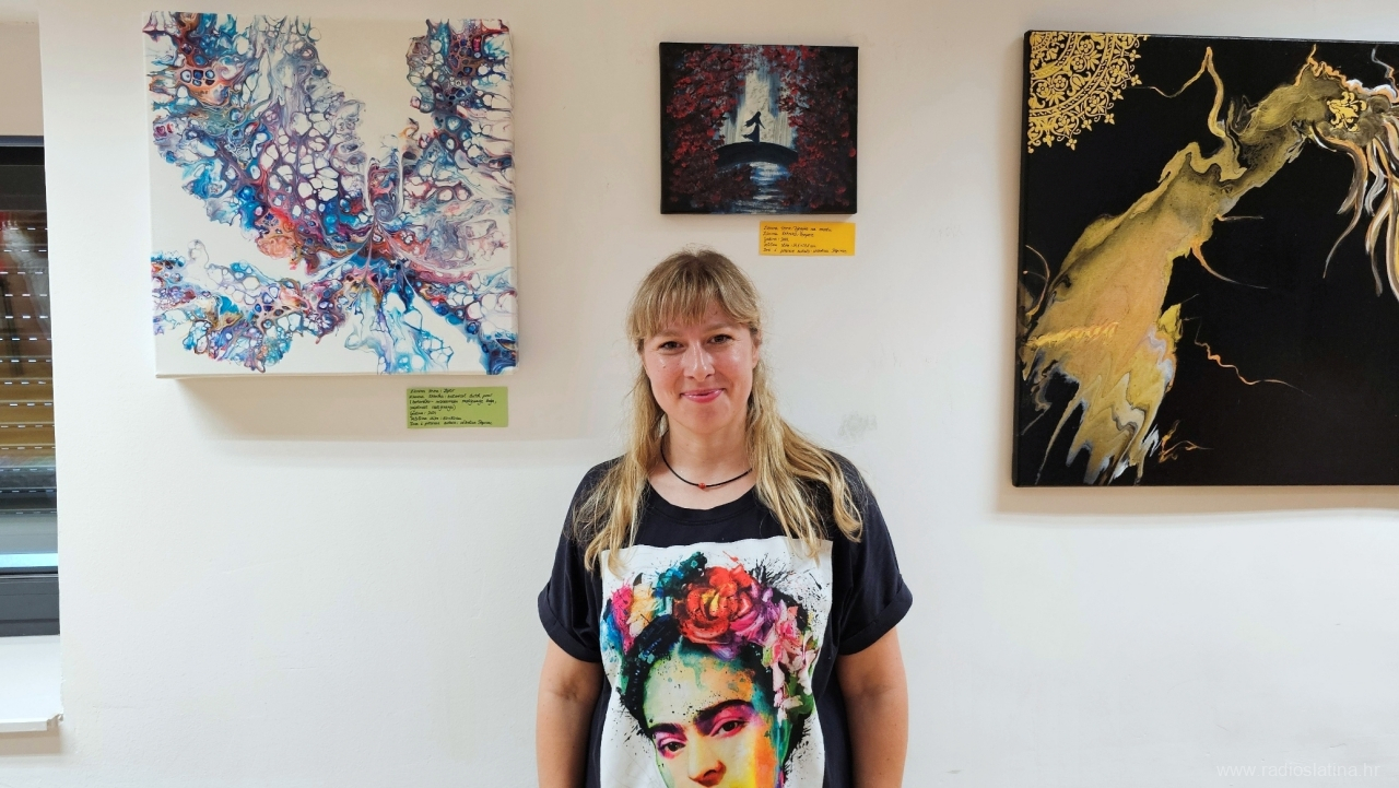 – Kolegica mi je po prvi put pokazala svoj uradak s razlivenim akrilnim bojama i objasnila da se posebnost u razlijevanju dobiva dodavanjem pouring medija. To je bilo dovoljno da krenem u istraživanje preko raznih YouTube kanala gdje sam otkrila jednu nizozemsku slikaricu fluidne umjetnosti Rinske Donna koja mi je i danas veliki uzor. Dosta sam vremena posvetila istraživanju samog procesa do najsitnijih detalja, odvažila se naručiti materijale i krenula u tu “pouring” priču – napominje Nikolina koja je sredinom 2024. godine uspjela imati i svoju prvu samostalnu izložbu u galerijskom prostoru Gradske knjižnice Viktora Žmegača u Slatini.