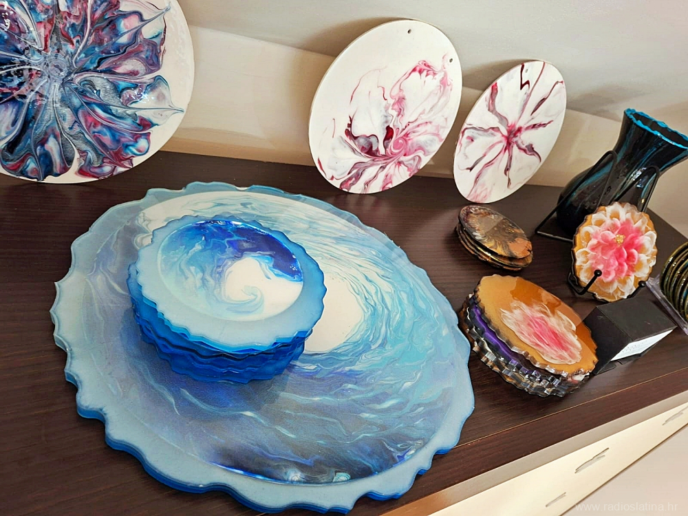 – Moram posebno istaknuti susretljivost ravnateljice Sanje Pajnić koja je bila izričito zainteresirana za takav oblik slikarstva te odlučila javnosti ponuditi nešto nesvakidašnje i novo. Bila je odlično posjećena i moram priznati da u tim trenucima nisam niti bila svjesna što mi se događa – nastavlja Nikolina koja danas akrilne boje ne razlijeva samo na platno, već i na različite čvrste materijale i kombinira i epoxy smolu te u njenom atelijeru nastaju i unikatne vaze, satovi, stolne plohe i tanjurići, a posebnost svakog uratka je onaj faktor iznenađenja koji se ne zna do samoga kraja na iznenađenje i samog umjetnika.