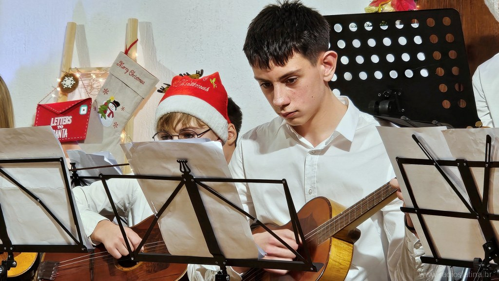 Na pozornici su se izmjenjivali brojni učenici različitih odjela: solisti, zbor, komorni sastavi, orkestar gitara te puhački i tamburaški orkestar škole. Izveli su raznolik blagdanski program koji je obuhvatio tradicionalne božićne pjesme, djela domaćih i stranih autora, ali i popularne klasike bez kojih prosinac ne prolazi. Publika je uživala u nizu izvedbi, od najmlađih glazbenika koji su tek zakoračili u svijet nota do iskusnijih učenika koji su izveli zahtjevnije skladbe.