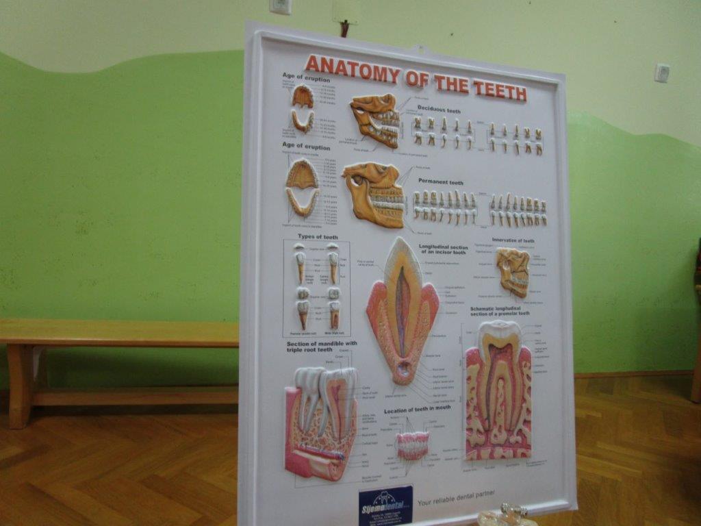 roditelje s najčešćim bolestima usne šupljine, o tome što za dijete znači gubitak ili propadanje zuba, o prehrambenim navikama i kako one utječu na oralno zdravlje, o važnosti roditelja u segmentu oralnog zdravlja i higijene te kada posjetiti stomatologa u ordinaciji i kako na to pripremiti dijete.