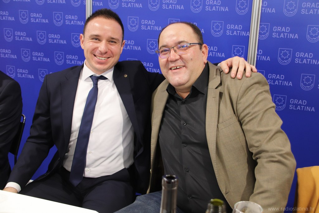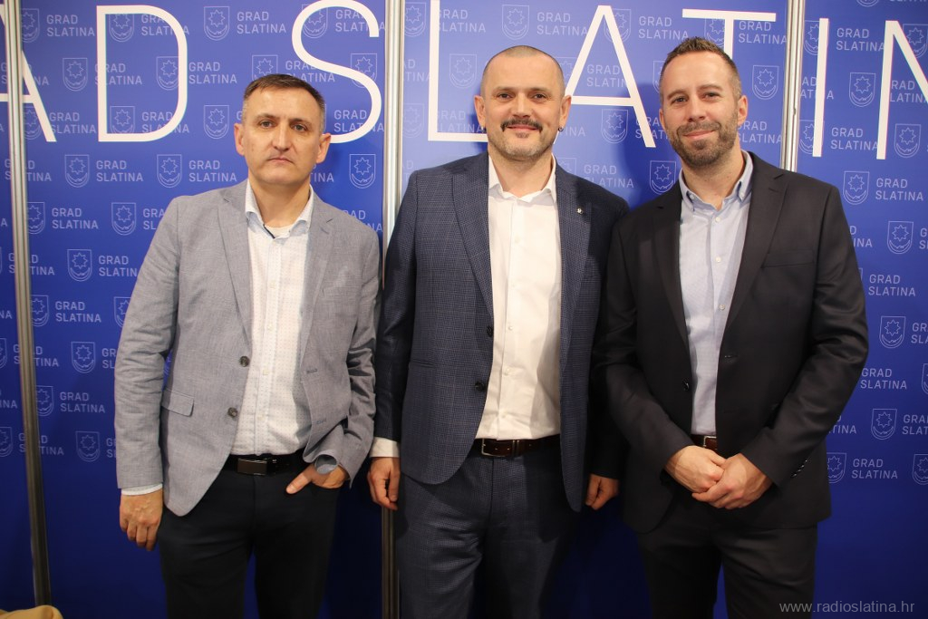 Na štandu Grada Slatine pozdravili su ih predsjednik Gradskog vijeća Grada Slatine Luka Repić i slatinski gradonačelnik Tomo Tomić u nazočnosti službenika za obavljanje poslova pročelnika; Ureda gradonačelnika Krešimira Štimca, Upravnog odjela za financije Josipa Cadera, Upravnog odjela za komunalne djelatnosti, prostorno uređenje i graditeljstvo Milu Pokopčića i Upravnog odjela za razvoj i gospodarstvo Vjekoslava Hessa, te direktora i ravnatelja gradskih tvrtki i institucija.