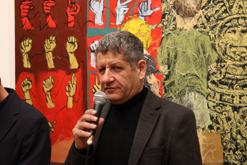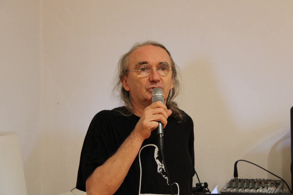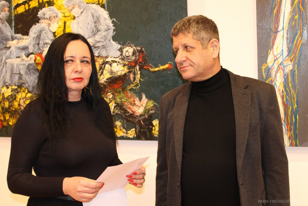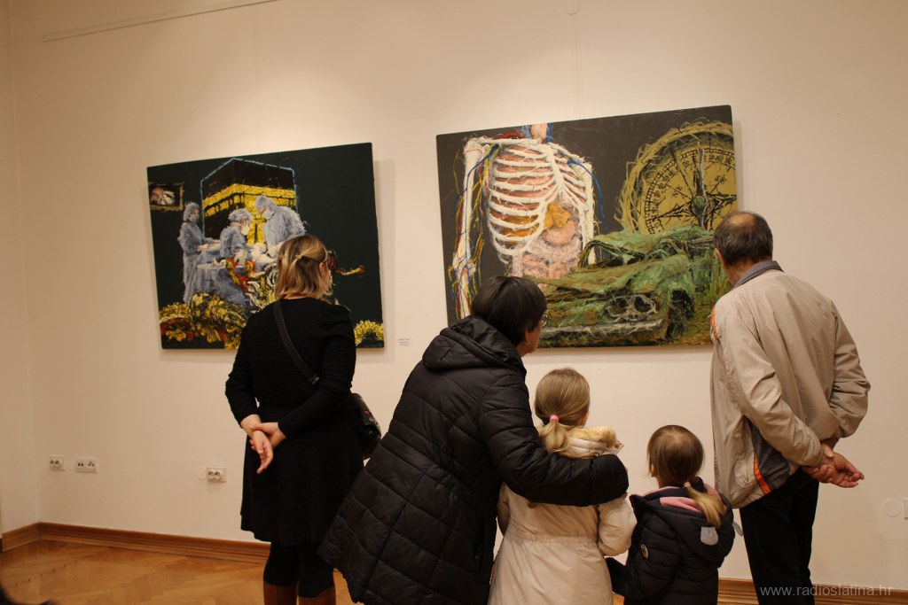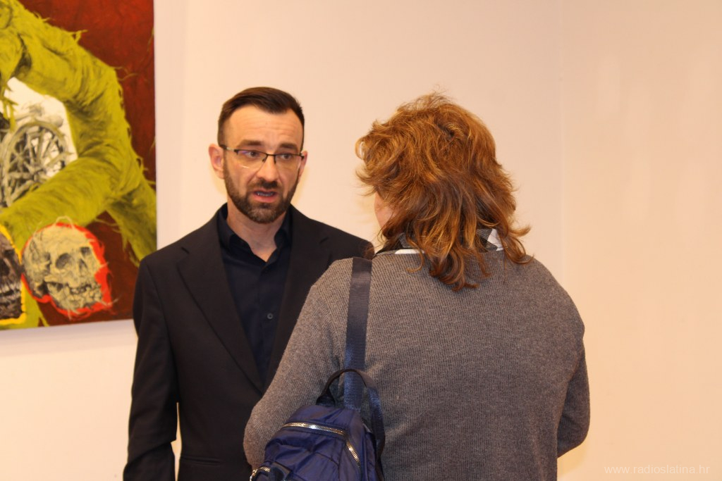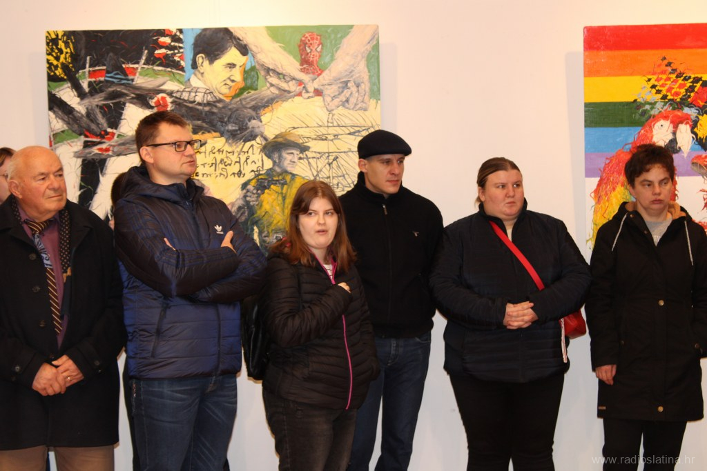 Publici se u nekoliko rečenica obratio i akademski slikar Teo Kiš, pobliže objasnivši motive svojih slika rekavši da ga zapravo ne motivira ništa posebno, nego slika ono što mu padne na pamet, tako su i njegove slike miks svega i svačega, a promatraču daje na maštu da sam stvara svoje zaključke. Također je objasnio da je ova njegova zbirka slika nastajala oko godinu i pol dana, ali da u Slatinu nisu stigle sve koje je naslikao.