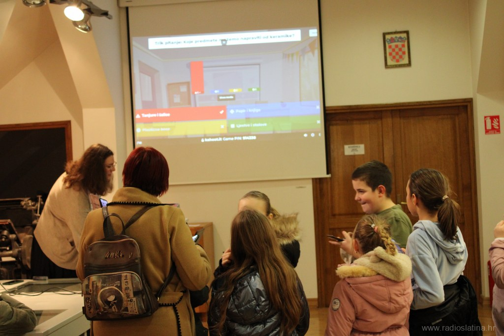 Program je dalje vodio u smjeru potkrovlja Muzeja do prostora školske zbirke, gdje su klinci sudjelovali u rješavanju kviza o lončarstvu koji je u Kahootu izradila studentica Lucija. Djeca su pokazala odlično znanje i za njega bila nagrađena čokoladama.