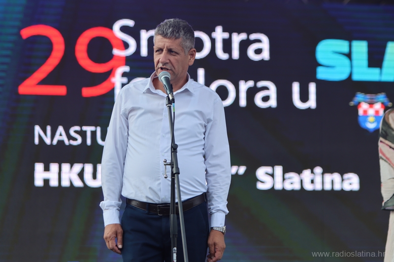 – Veliki je broj događanja koja se ovih dana odvijaju u našem gradu povodom proslave Dana grada Slatine, čak njih pedesetak, ali jedna od najupečatljivijih manifestacija svakako je Slatinska smotra folklora. Razlog tomu je što okuplja kulturno-umjetnička društva koja čuvaju i njeguju nematerijalno kulturno i povijesno bogatstvo svoga kraja, a upravo na ovakvim manifestacijama imamo priliku vidjeti svu raskoš narodnih nošnji i bogatstvo narodnih običaja kroz koreografirane pjesme i plesove.
