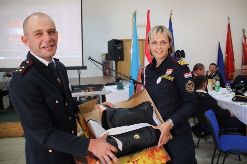 U sklopu svečanosti županijska vatrogasna zapovjednica Mateja Fras Venus simbolično je uručila v. d. zapovjednika Vatrogasne zajednice Općine Sopje Bernardu Štefanoviću par čizama koje je Vatrogasna zajednica Virovitičko-podravske županije povodom 110. rođendana DVD-a Sopje nabavila za desetinu operativnih vatrogasaca.