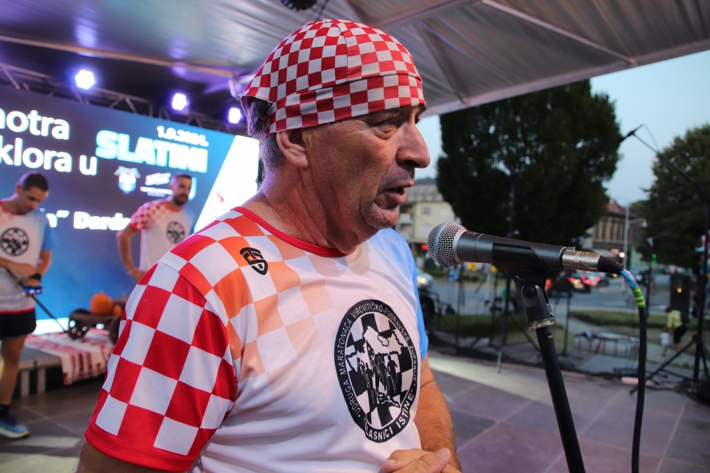 Po dolasku na središnji gradski trg u Slatini svima se na dočeku zahvalio predsjednik Udruge maratonaca Virovitičko-podravske županije „Glasnici istine“ Pavo Tutenov.