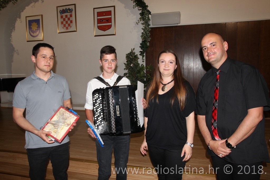 - Ivan Rončević, učenik 2. razred harmonike i mentor Silvio Gumbarević. Ivan je osvojio na 56. Hrvatskom natjecanju učenika i studenata glazbe i plesa regionalno III. nagradu, Hrvatsko natjecanje „Mladi Padovec“ u Novom Marofu II. nagradu i na 9. hrvatskom natjecanju iz harmonike u Daruvaru II. nagradu.