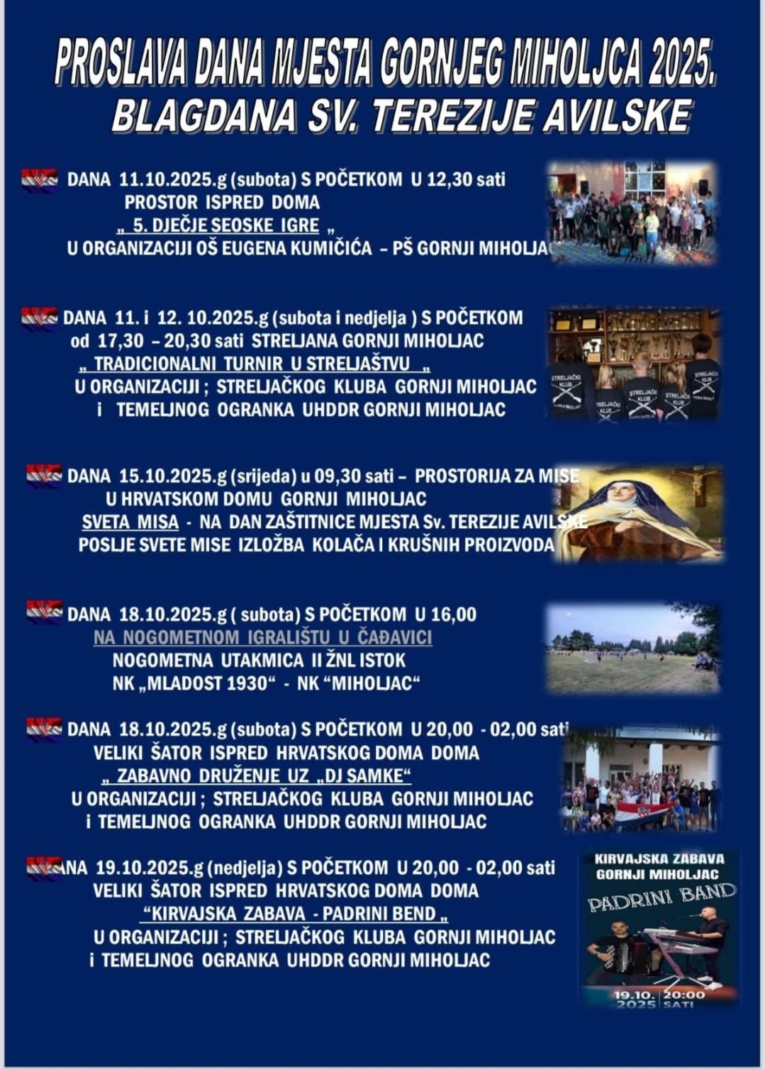 Gornji Miholjac Dan svoga mjesta i blagdan zaštitnice sv. Terezije Avilske obilježava višednevnim programom od 11. do 19. listopada