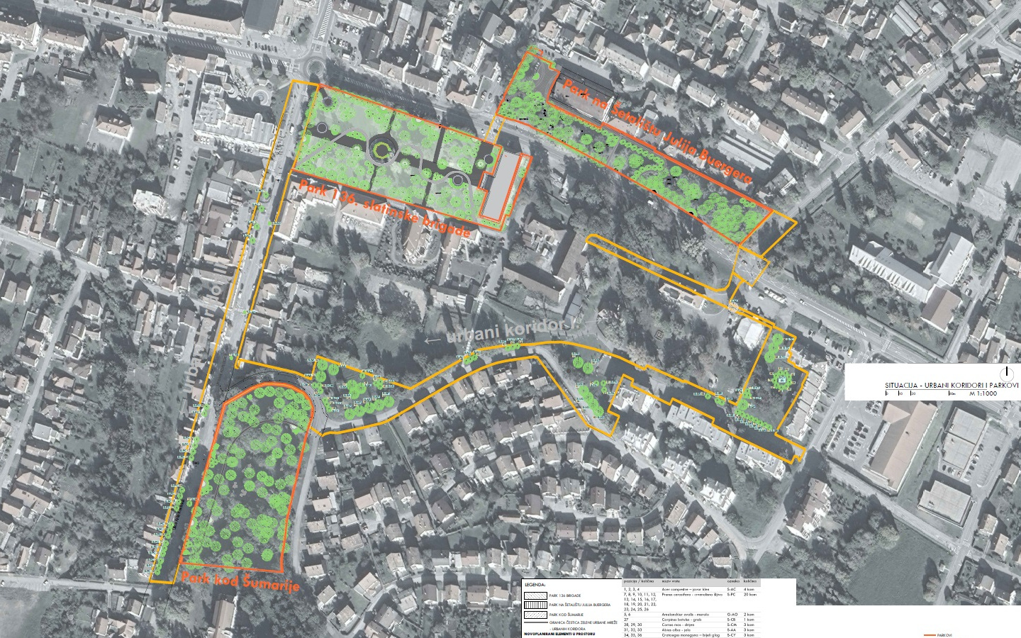 Prijavljeni projekt „Zelena urbana mreža središnjeg dijela Slatine“ obuhvaća revitalizaciju 3 parka i njihovo povezivanje zelenim koridorima, a koji zajedno čine veliku zelenu urbanu mrežu površine 5 ha, u koju ulaze Park 136. slatinske brigade, park na Šetalištu Julija Bürgera i parka kod Šumarije u Ulici Ante Kovačića.