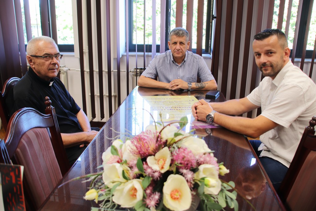Tim povodom danas je u Gradskoj upravi Grada Slatine održan prijem na kojemu su zamjenik gradonačelnika Ilija Nikolić i pročelnik Upravnog odjela za razvoj Grada Marin Kokorić primili slatinskog župnika, preč. Nikolu Jušića.