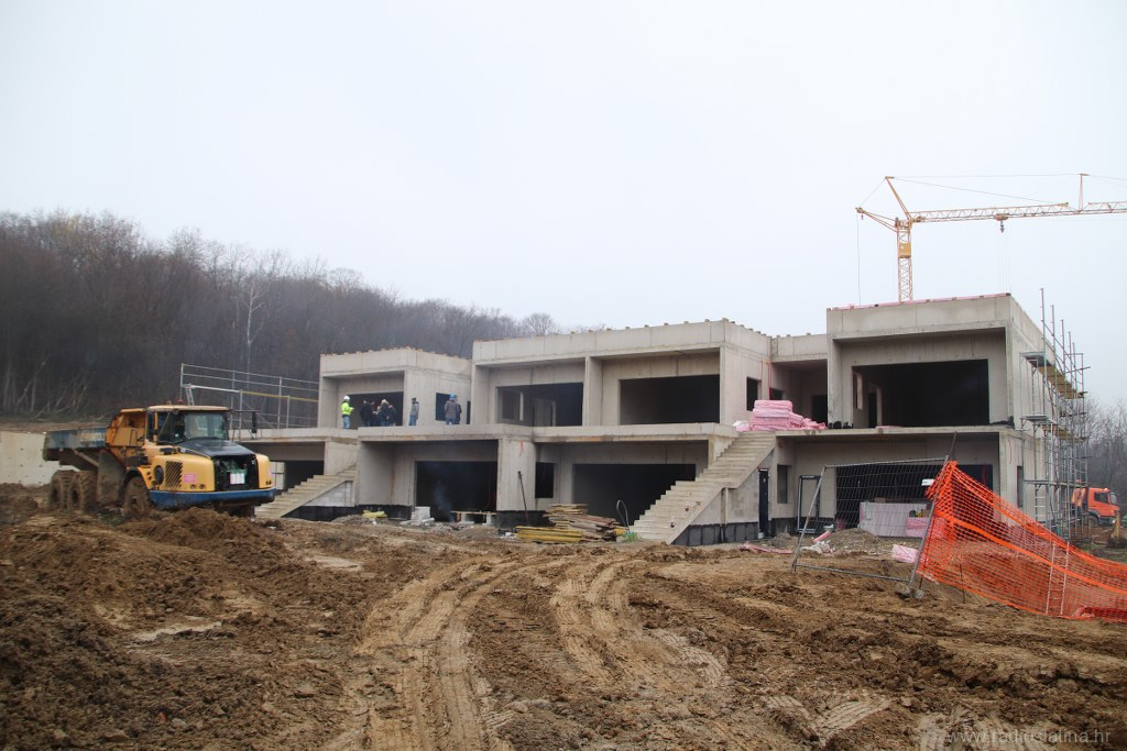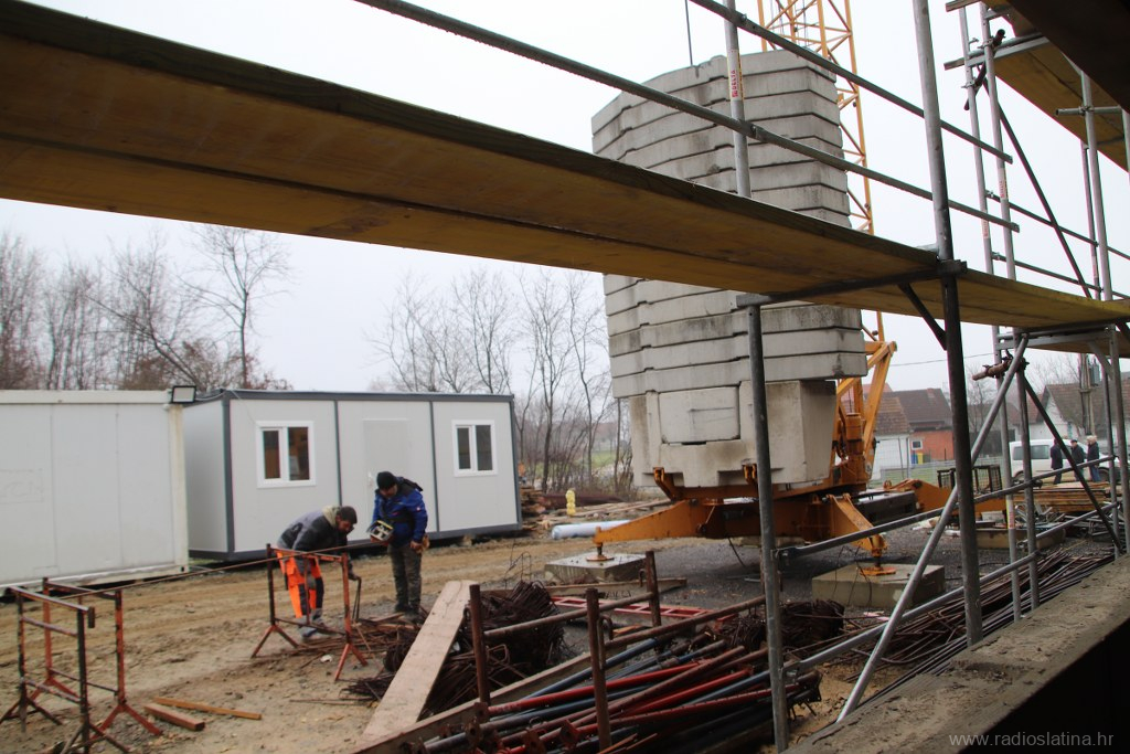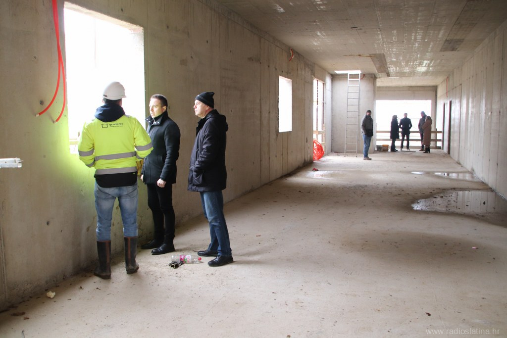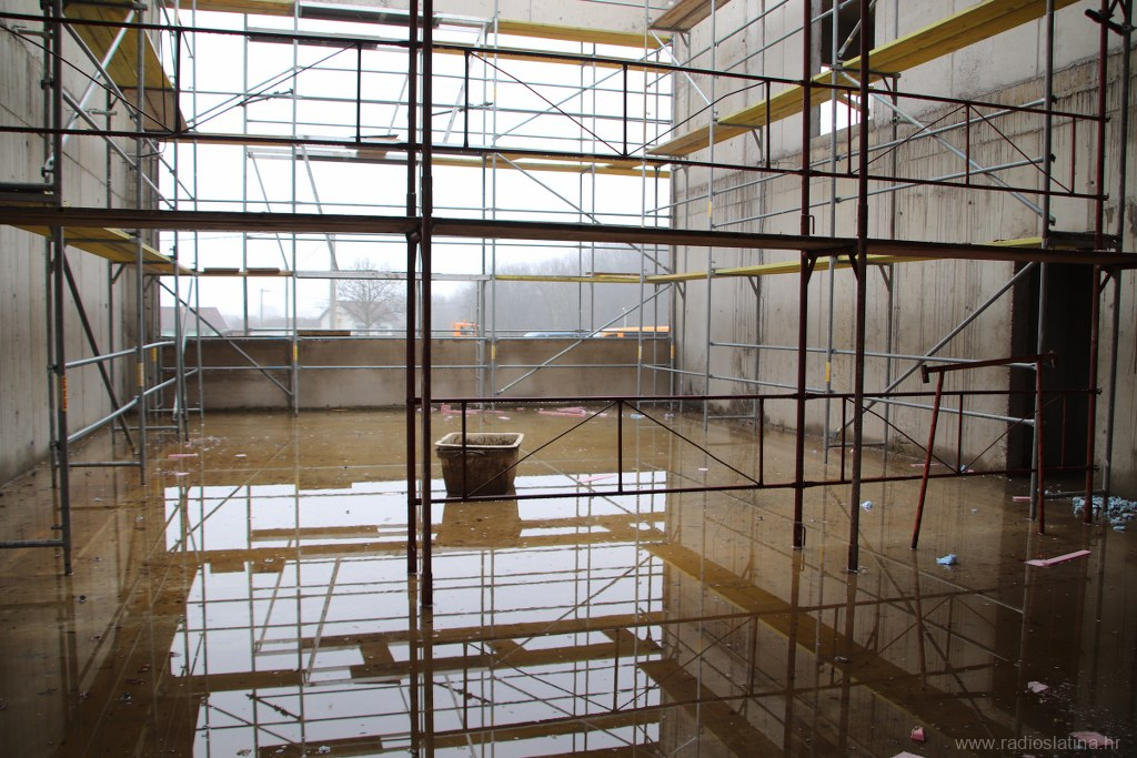 Direktor tvrtke Građenje Marković Zdenko Marković i voditelj radova Dalibor Bičanić objasnili su kako su armiranobetonski radovi na zgradi i potpornim zidovima u dvorištu područnog vrtića završeni. Isto tako dopremljeni su aluminijski prozori i staklene stijene čija ugradnja započinje u prizemlju zgrade, a sve je spremno i za postavljanje lamelirane krovne konstrukcije i limenog pokrova na polivalentnoj dvorani.