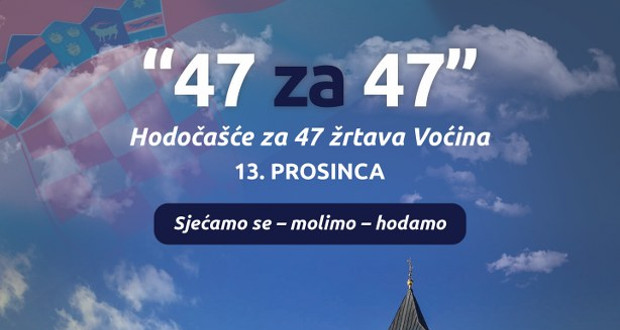 Hodočašće “47 za 47” održat će se u subotu, 13. prosinca 2025. godine, u čast 47 nevino stradalih žrtava Voćina. Sudionici će, u molitvi i tihoj zahvalnosti, pješice prijeći put od Slatine do Voćina, gdje će se priključiti službenom protokolu obilježavanja stradanja.