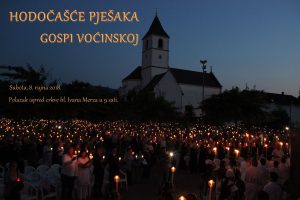 Pješaci hodočasnici iz Slatine polaze na hodočašće u Voćin u subotu 8. rujna u 9 sati ispred crkve bl. Ivana Merza, gdje će biti blagoslov hodočasnika prije polaska. Voditelj pješaka je vjeroučitelj Marijan Ostrogonac. (mf)