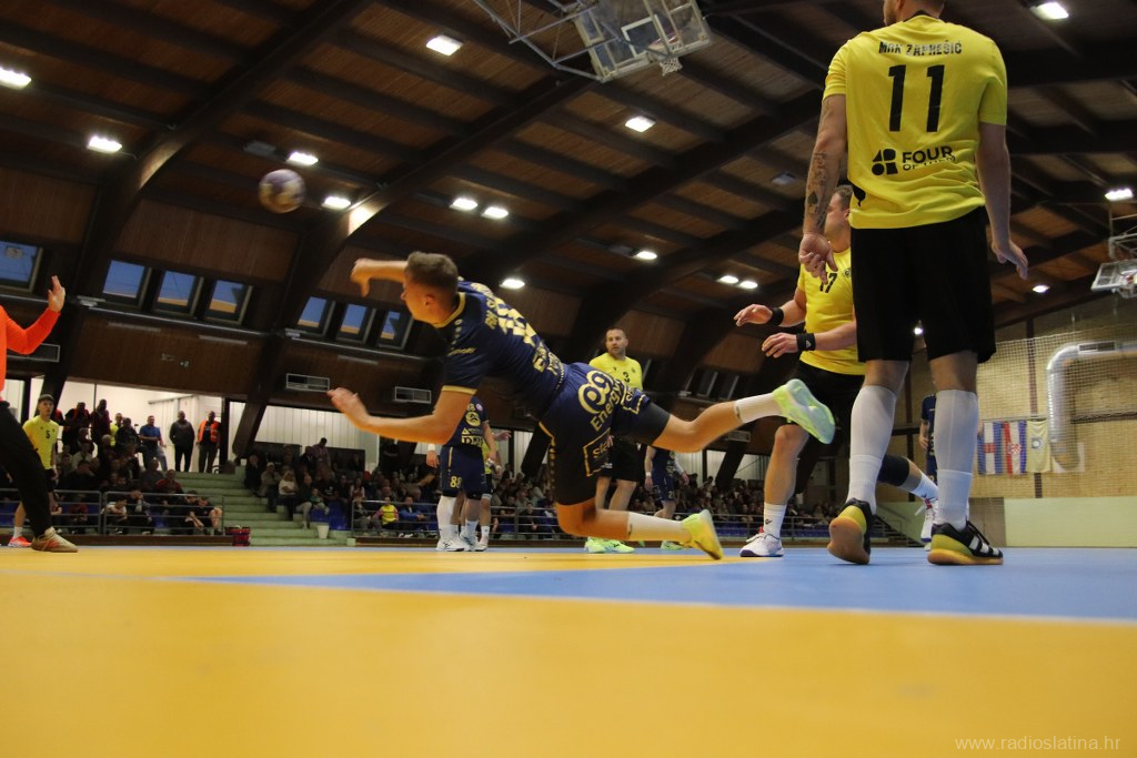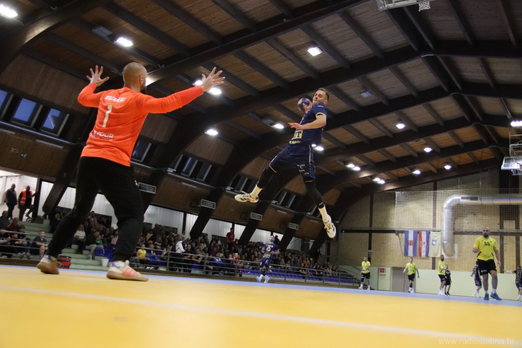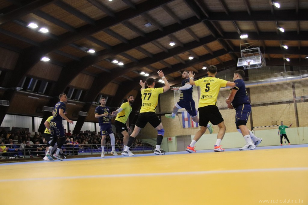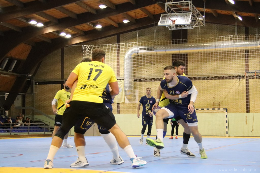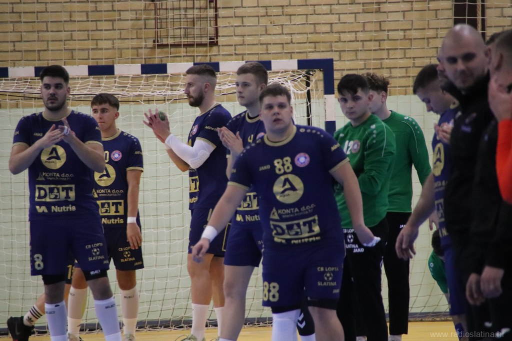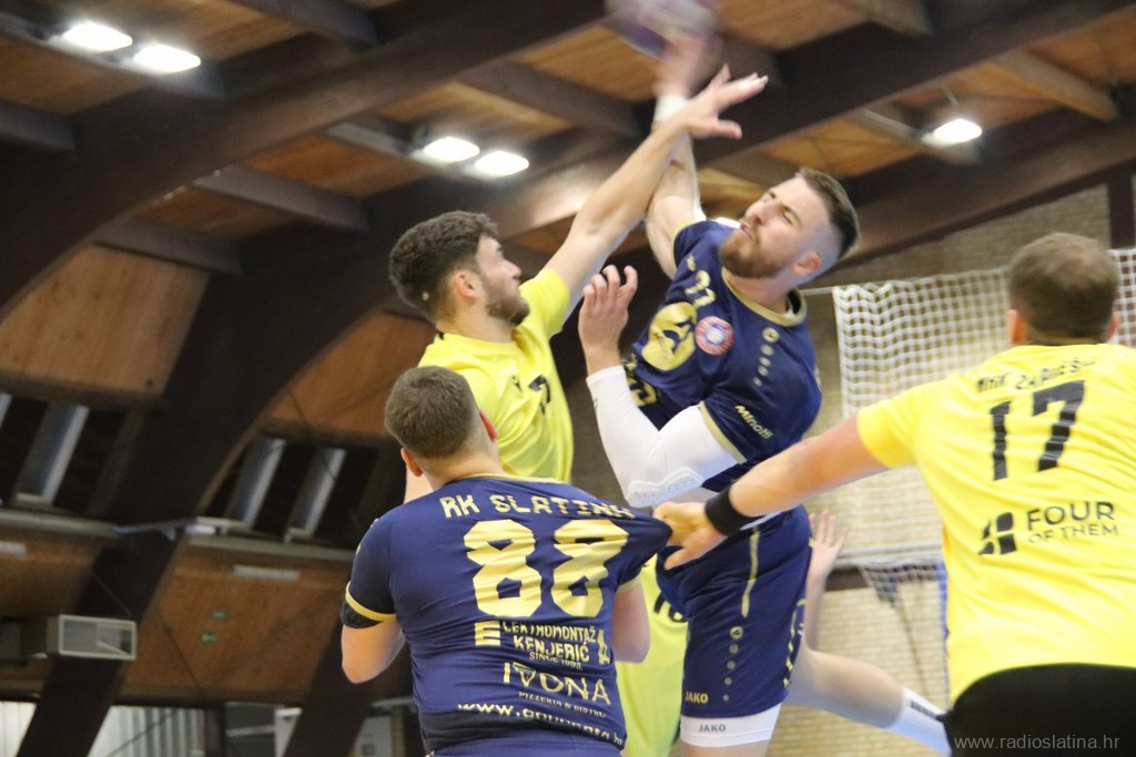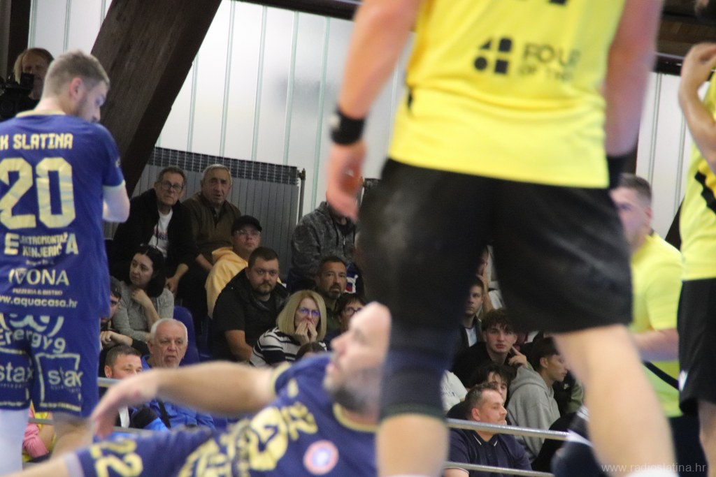 Sve do posljednjih 5 minuta prvog dijela gledali smo krajnje izjednačen susret s povremenim bljeskovima i s jedne i s druge strane terena. Gosti su do tada strpljivom igrom lako pronalazili put do mreže Slatine no kad su domaćini konačno posložili obranu, a posebice se to odnosi na početak drugog dijela, priča je postala prilično jednodimenzionalna. Tim uraganskim otvaranjem nastavka Slatina je serijom 5:0 otišla na neuhvatljivih plus 7 (19:12). S lagodnom prednošću nestalo je i ono još malo grča i gledatelji su do konca mogli bezbrižno uživati u lepršavoj igri svojih ljubimaca i prvoj domaćoj prvenstvenoj pobjedi. Spomenutu sjajnu obranu predvodio je vratar Bodin Hrkać koji je imao odličnu večer. Ono što posebno veseli je to da se čak 10 igrača Slatine upisalo u strijelce no bilo bi grijeh ne spomenuti još jednu za protivnike nezaustavljivu partiju Ivana Repića.