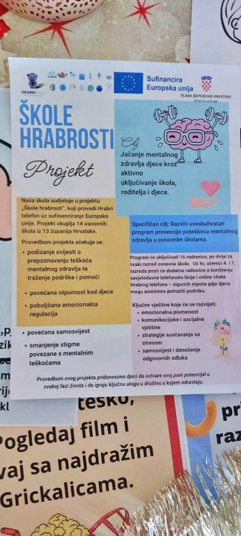 U sklopu projekta Škola hrabrosti, čiji je nositelj Hrabri telefon, u Osnovnoj školi Eugena Kumičića u Slatini, 18. prosinca 2025. godine, održan je humanitarni božićni sajam pod nazivom „Pomozi srcem za dobrobit uma“. Projekt okuplja ovu slatinsku školu i još 13 škola diljem Hrvatske s ciljem jačanja dobrobiti učenika i cjelokupne školske zajednice, a sufinanciran je sredstvima Europske unije.