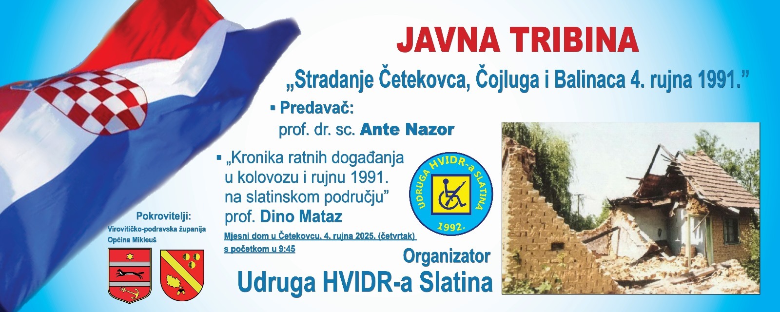 HVIDR-a Slatina poziva na memorijalnu hodnju i javnu tribinu u Četekovcu 4. rujna 2025. godine