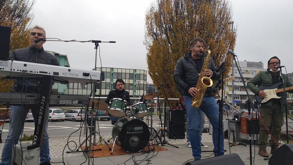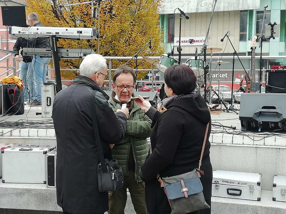 Tako je bilo i u Slatini. Na našoj pozornici kod fontane okupila se grupa sačinjena od slatinskih i virovitičkih glazbenika. Glazbenom dijelu oproštaja prethodilo je nekoliko prigodnih rečenica okupljenih glazbenika: