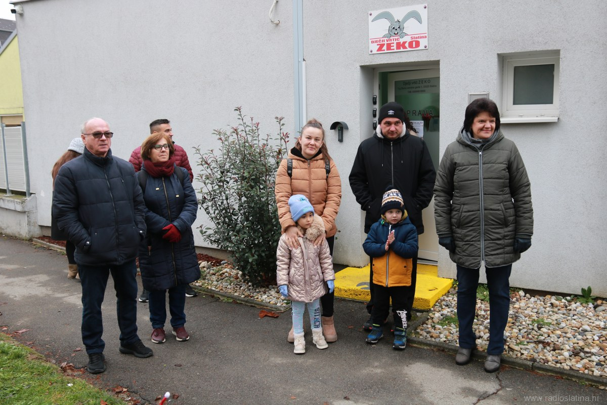 Gradonačelnik Grada Slatine Tomo Tomić obratio se okupljenima, uputio riječi podrške ovoj lijepoj inicijativi te ujedno službeno otvorio mali Božićni sajam Dječjeg vrtića Zeko.