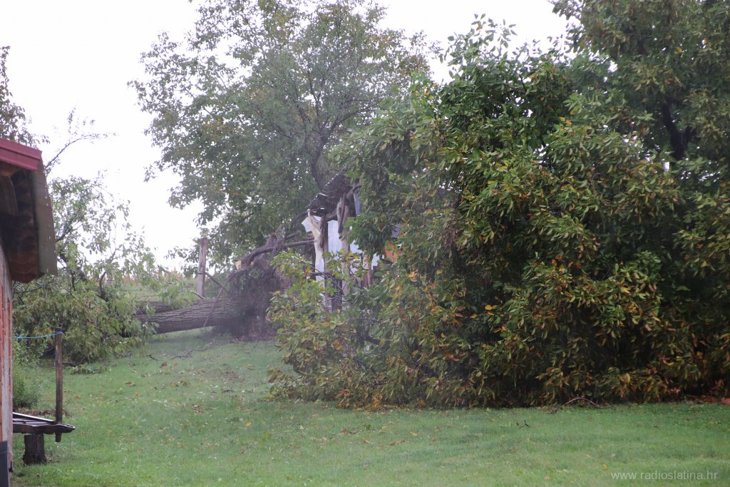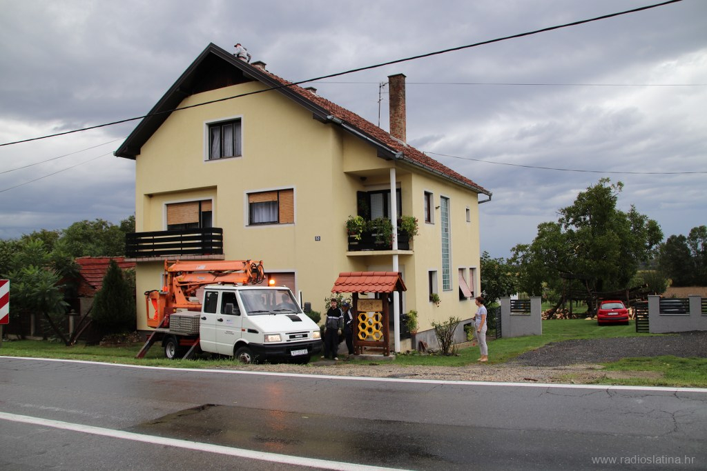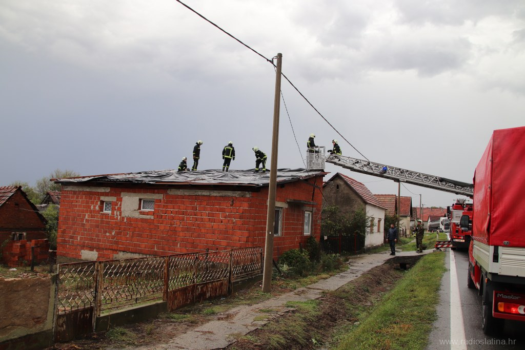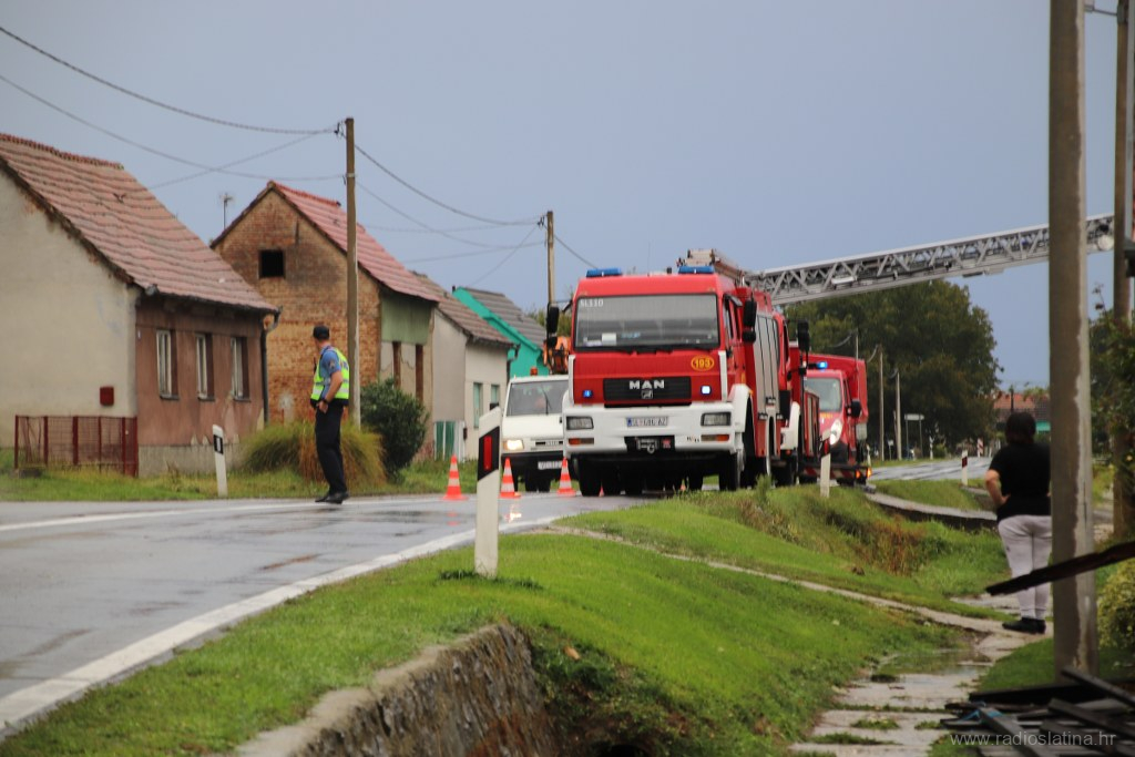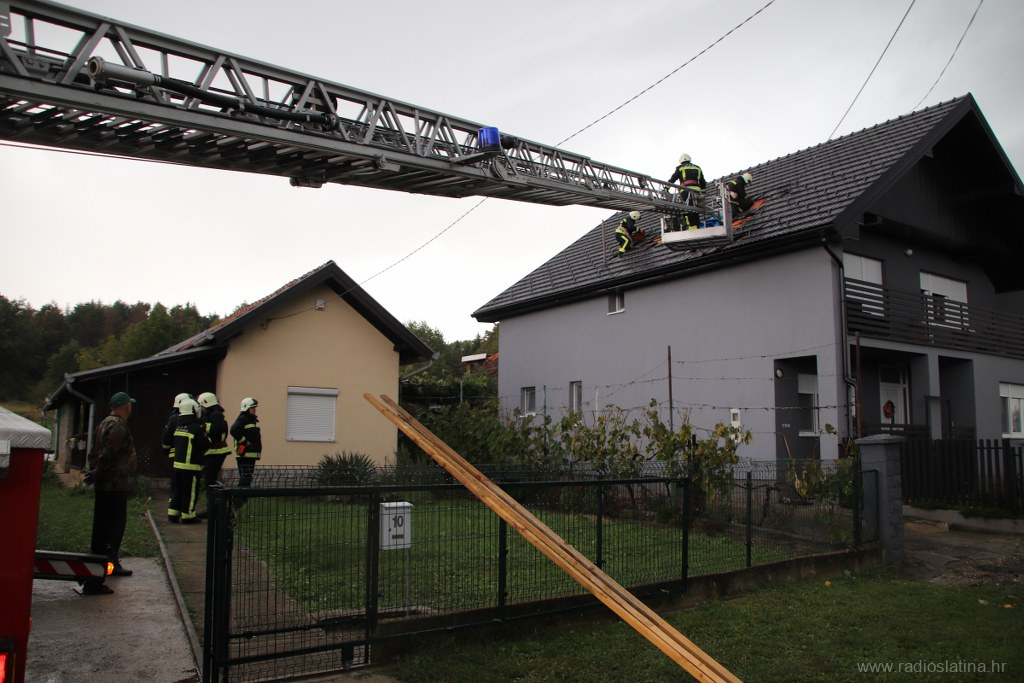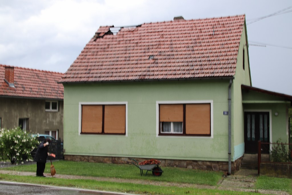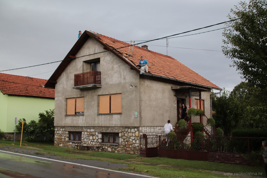 Naša je ekipa također izašla na teren te zabilježila trenutačnu situaciju. Kuća na k.br. 177 ostala je bez kompletnog krovišta, a brzom intervencijom vatrogasaca zaštićena je najlonom od kiše koja još uvijek pada kako bi se zaustavila daljnja šteta. Na nekoliko su kuća urušeni dimnjaci, a dio krovišta ostao bez crijepa.