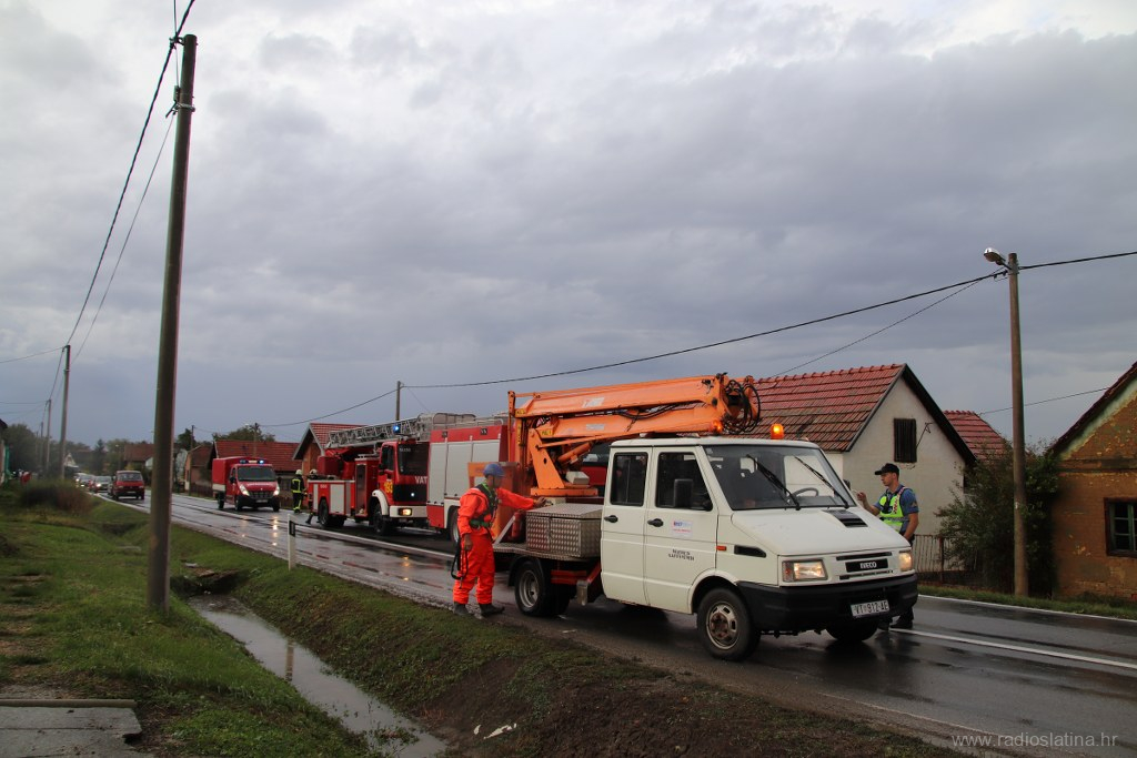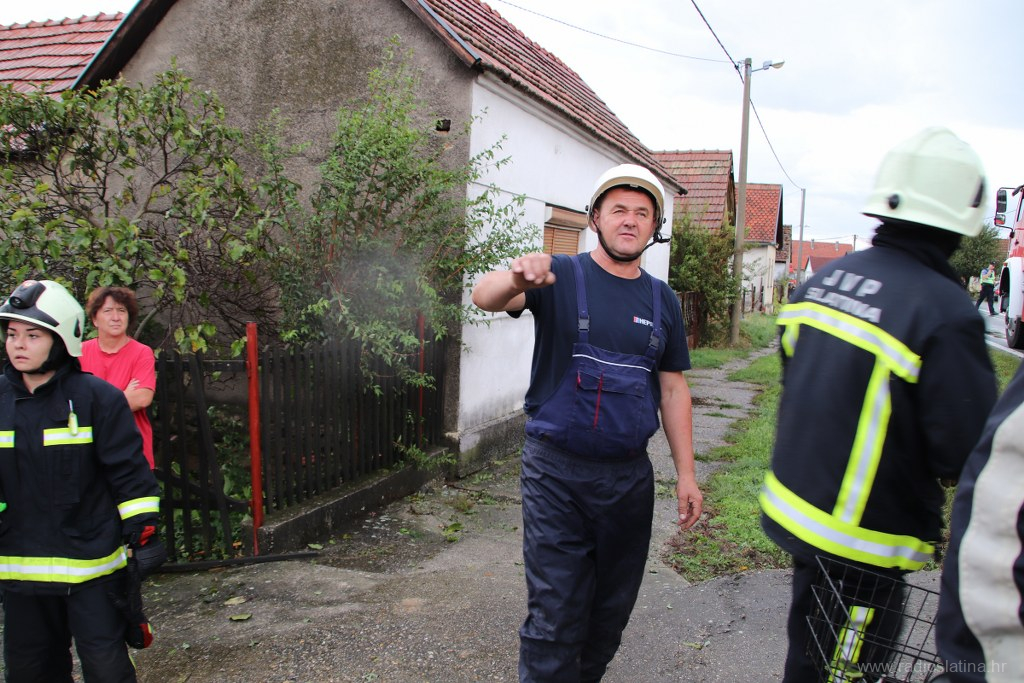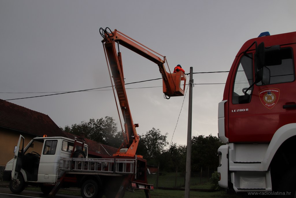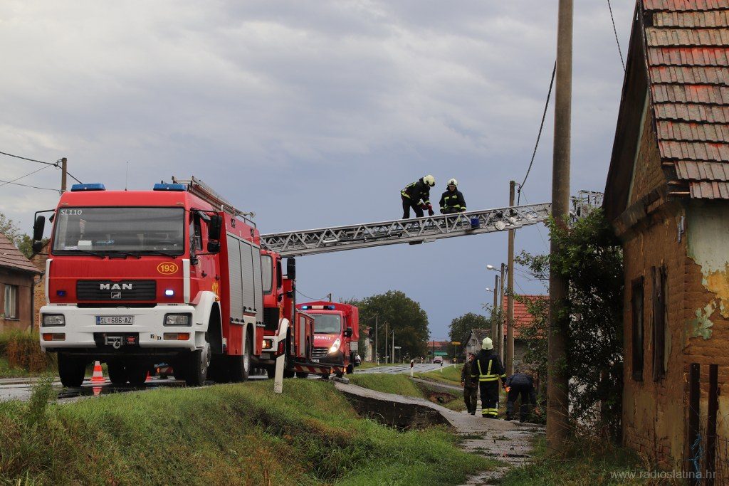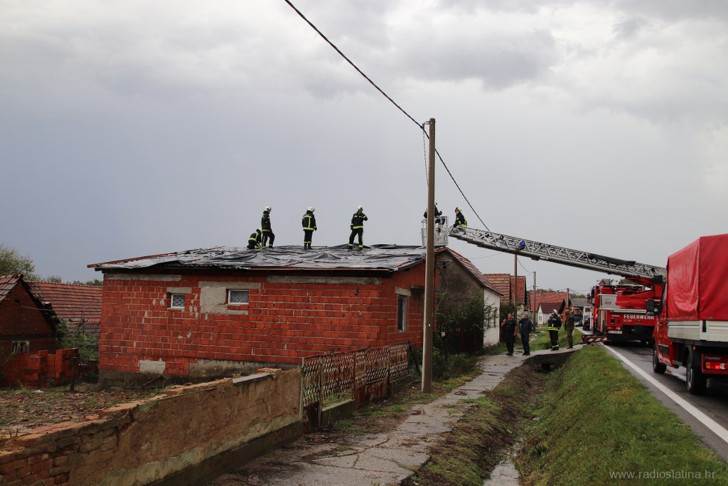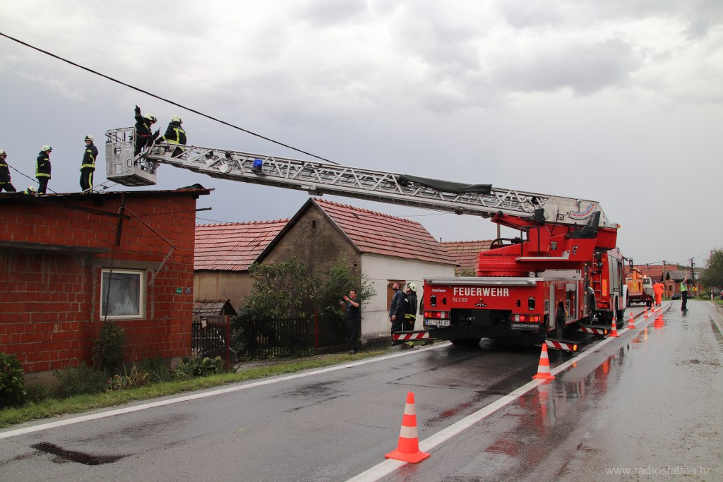 Županijski centar 112 zaprimio je više dojava o oštećenim krovovima kuća, oštećenim limovima i crijepovima na gospodarskim objektima te dojave o srušenim stablima i oštećenim osobnim vozilima, te su odmah izišli na teren gdje su upućeni i službenici Policijske postaje Slatina koji su regulirali promet za vrijeme niza intervencija vatrogasaca Javne vatrogasne postrojbe Slatina i lokalnih DVD-a, a na terenu su i djelatnici HEP-a te ostale nadležne službe.
