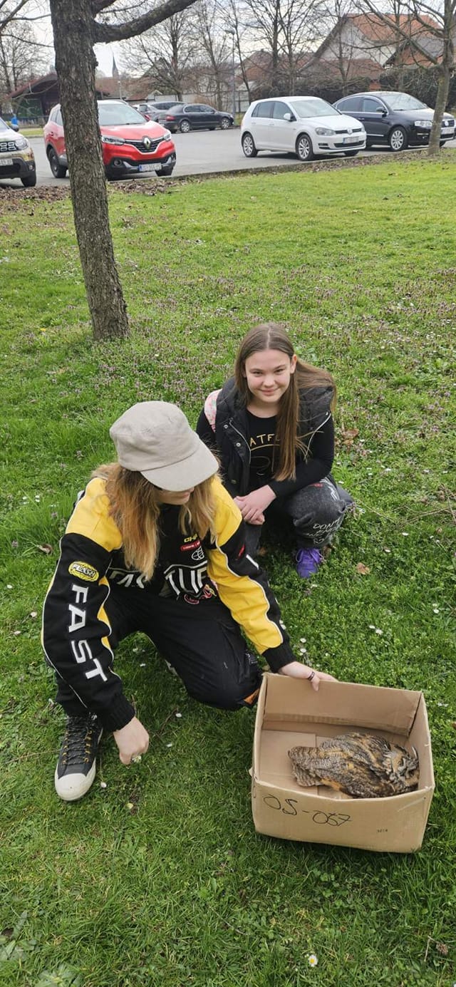 Neustrašive djevojčice nisu oklijevale ni trenutka te su pritekle u pomoć nemoćnoj ptici koju su zbrinule do dolaska tima za zbrinjavanje ozlijeđenih bijelih roda i drugih ptica iz Noskovačke Dubrave kojima su predale ozlijeđenu sovu na skrb.