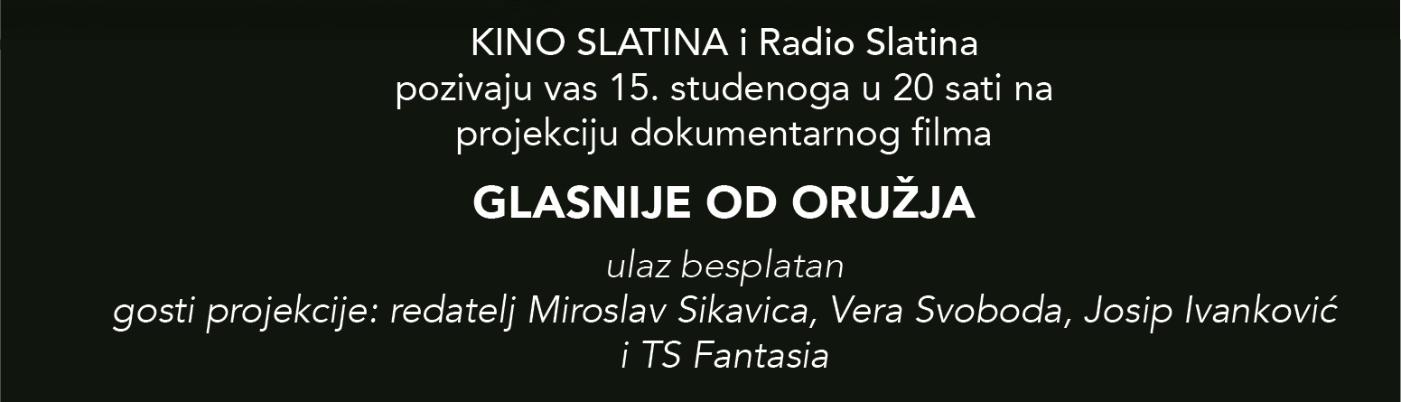 Kino Slatina i Radio Slatina pozivaju vas 15. studenog od 20 sati na projekciju filma GLASNIJE OD ORUŽJA