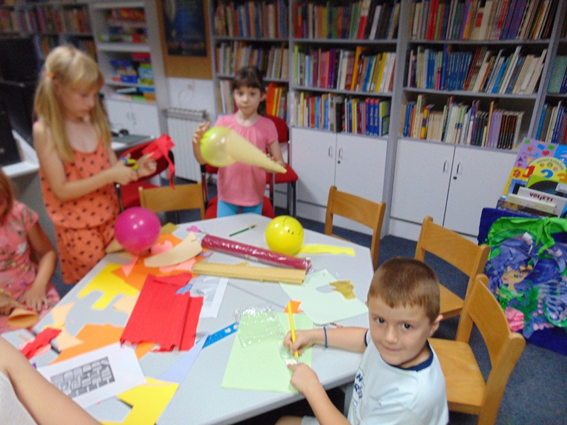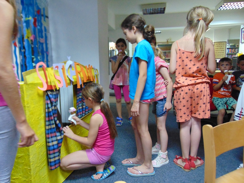 U Knjižnici smo i mi pravili svoj sladoled različitih oblika i pomoću različitih materijala. Izrađivali smo sladoled u kornetu i na štapiću. Za sladoled u kornetu smo koristili papir i balone koji su poslužili kao kuglice. Osim toga, pojedini su se okušali i u origami tehnici izrade sladoleda što su i vrlo uspješno izveli. U Knjižnici je vladao kreativan nered te su naši sladoledi bili vrlo šaroliki i različitih okusa, a kakav bi to dan sladoleda bio kad sve na kraju ne bismo začinili pravim sladoledom. Naše se kazalište pretvorilo u slastičarnicu u kojoj se dijelio sladoled, a red je za nju bio veoma dugačak. Zajedno smo se na kraju malo zasladili i ohladili te smo u iščekivanju iduće radionice u Knjižnici.