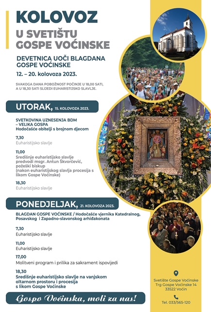 Na svetkovinu Uznesenja Blažene Djevice Marije – Veliku Gospu, u utorak, 15. kolovoza iz Svetišta Gospe Voćinske pozivaju sve obitelji diljem Požeške biskupije i šire, da se pridruže Hodočašću obitelji s brojnom djecom i zajedničkoj molitvi za sve naše obitelji.